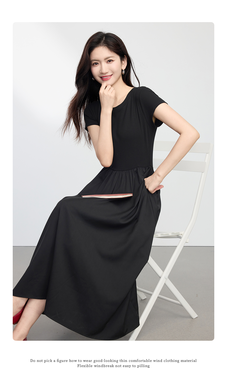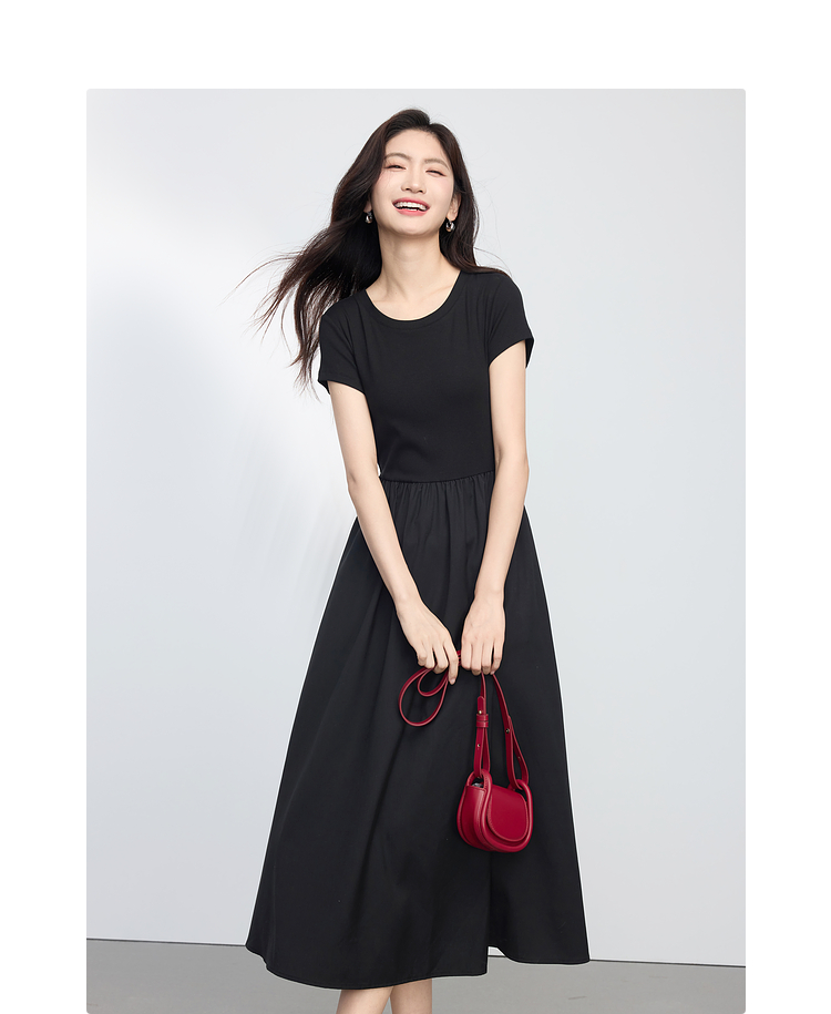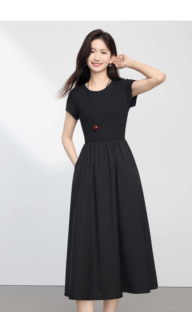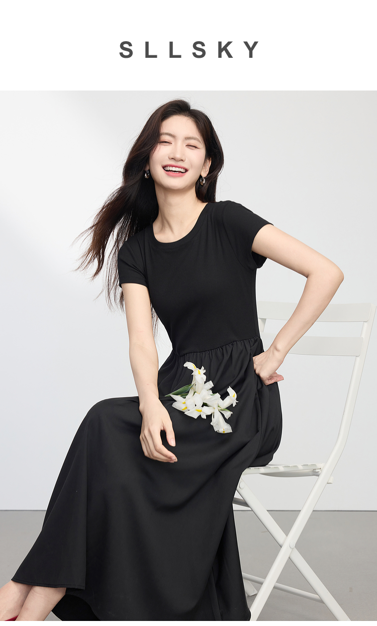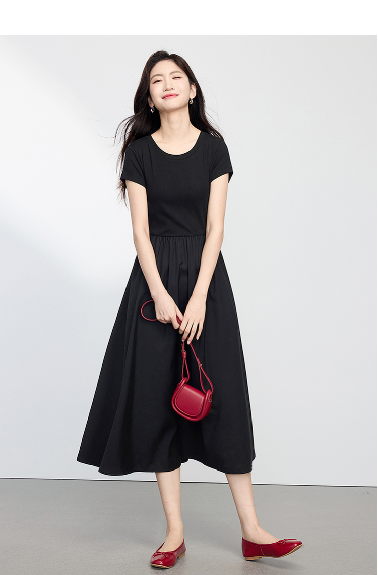 【专属特价】熙世界法式赫本风黑色连衣裙女2025夏季新款通勤气质显瘦收腰裙子