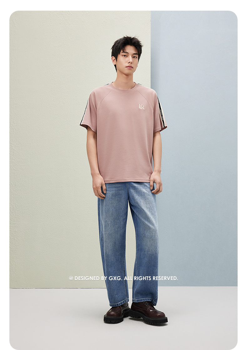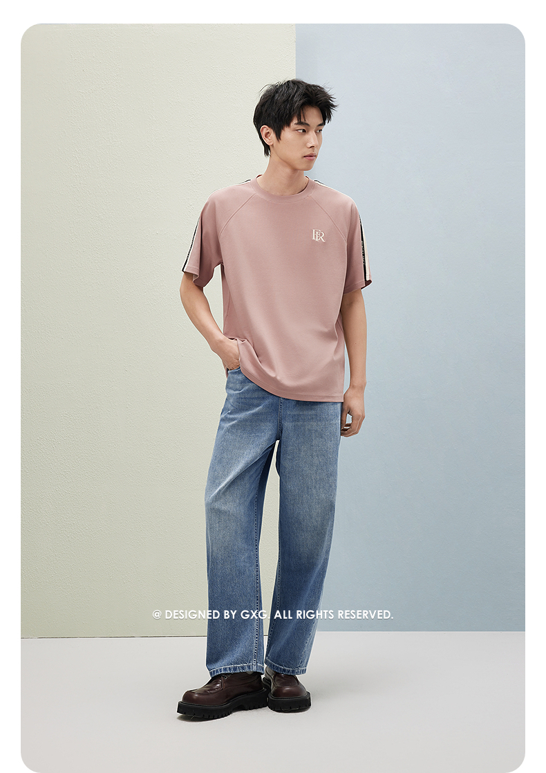 GXG男装 265g重磅字母绣花简约时尚圆领短袖T恤男士 夏季新品