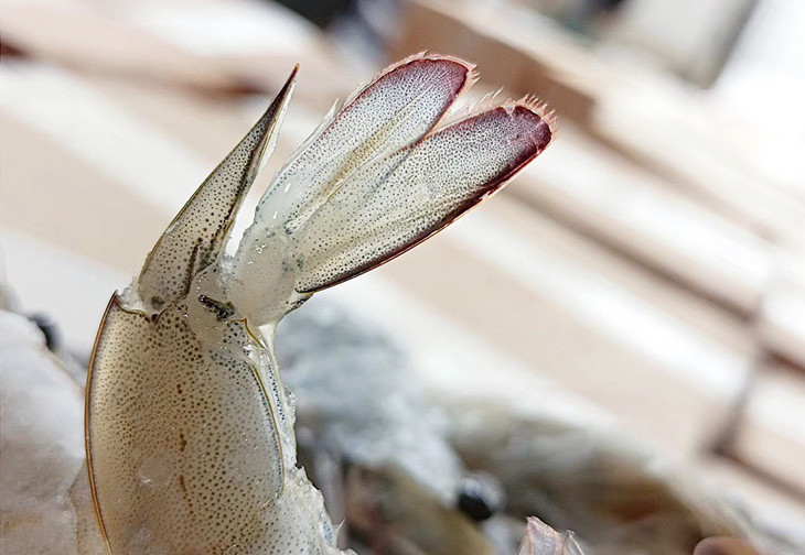都是红脚、红尾的状态,非常新鲜,虾头与下身联结紧密,证明是新虾,特别好!