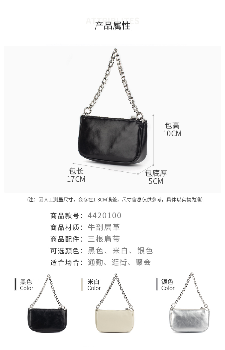 和诚行 2024新款时尚链条真皮单肩斜挎包女通勤百搭腋下包4420100