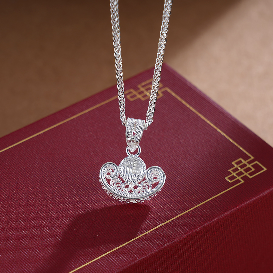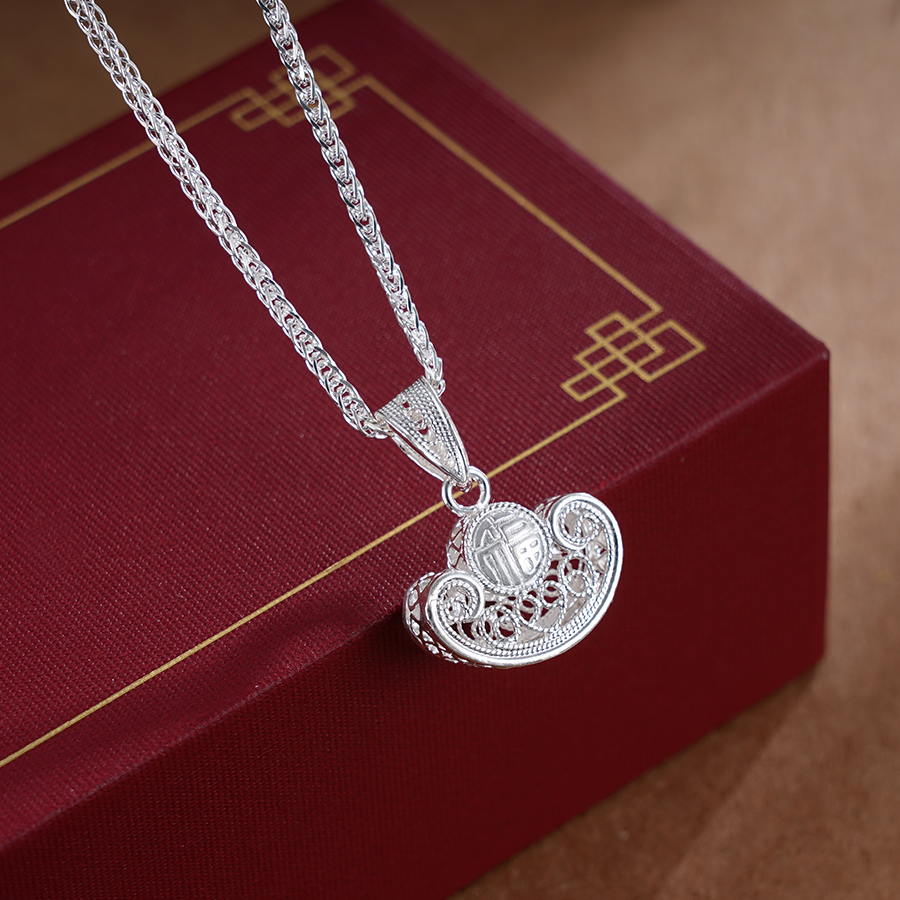 【寓意】:元宝采用花丝工艺编织,上有“福字”点缀,展现工艺复杂,暗含小巧思。寓意福气连绵,藏富纳宝。