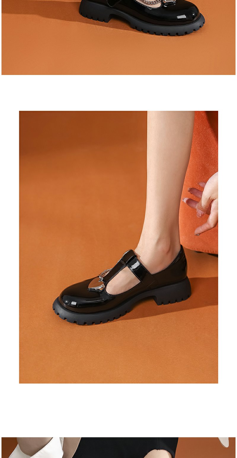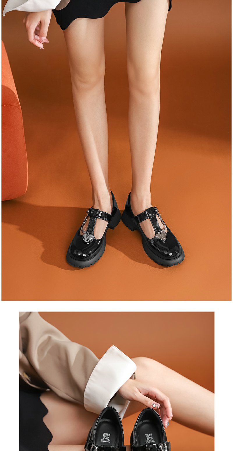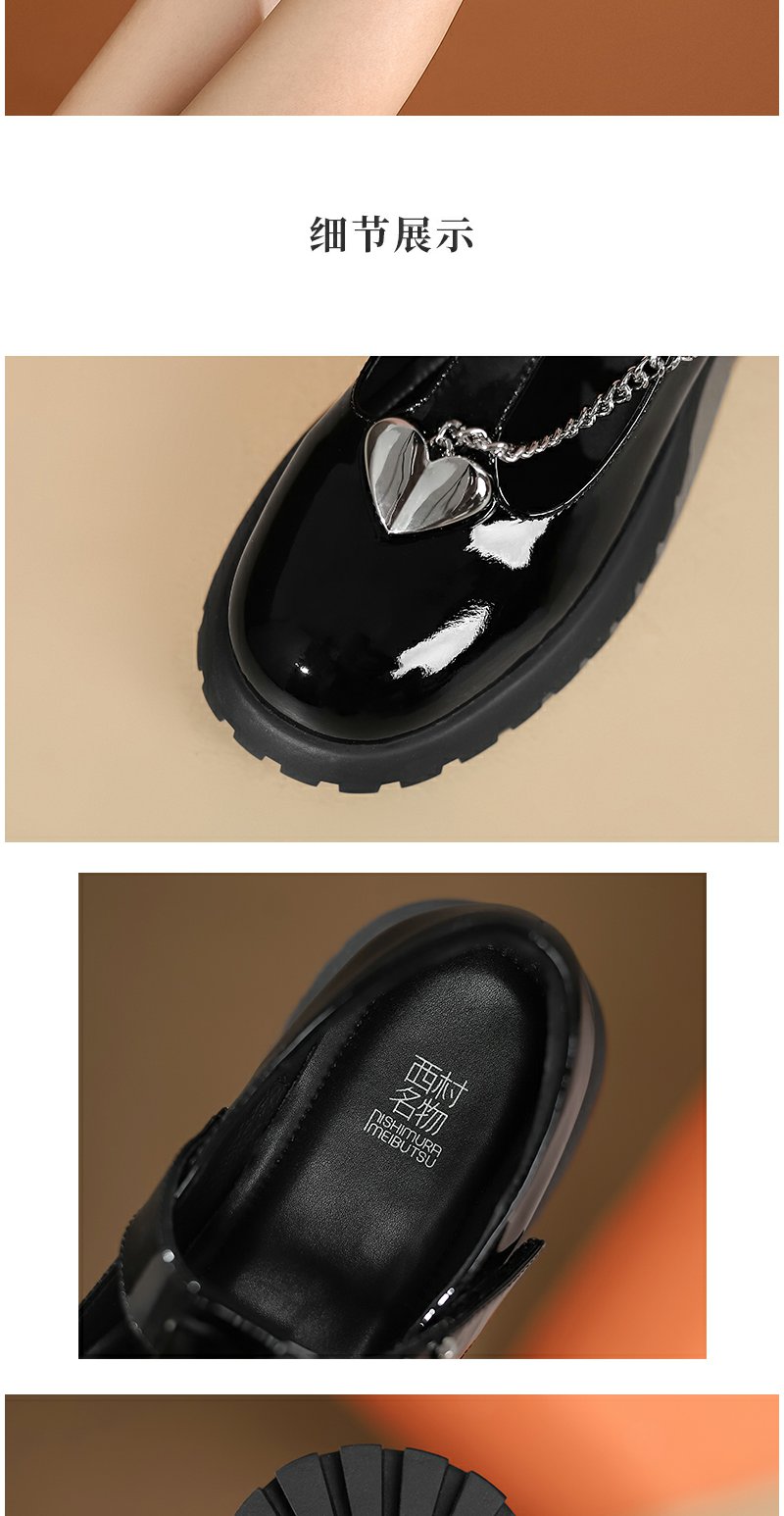 西村名物2022秋季新款复古玛丽珍黑色lo鞋魔术贴jk小皮鞋女37221