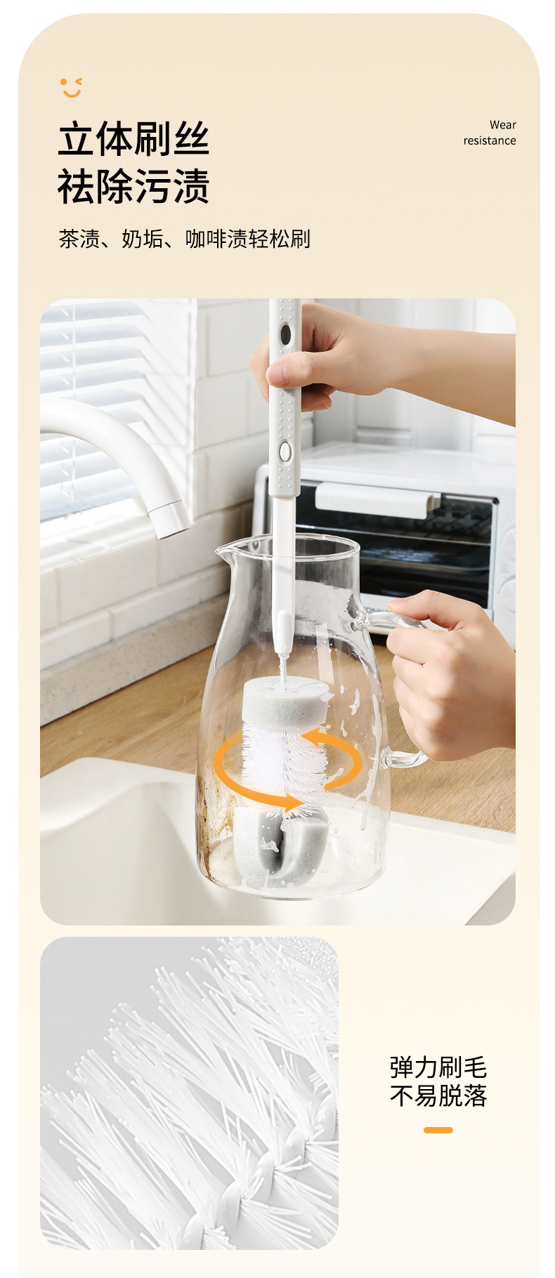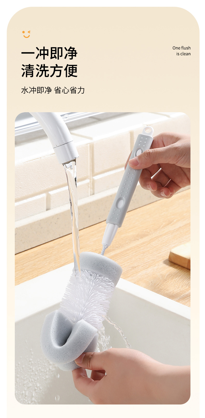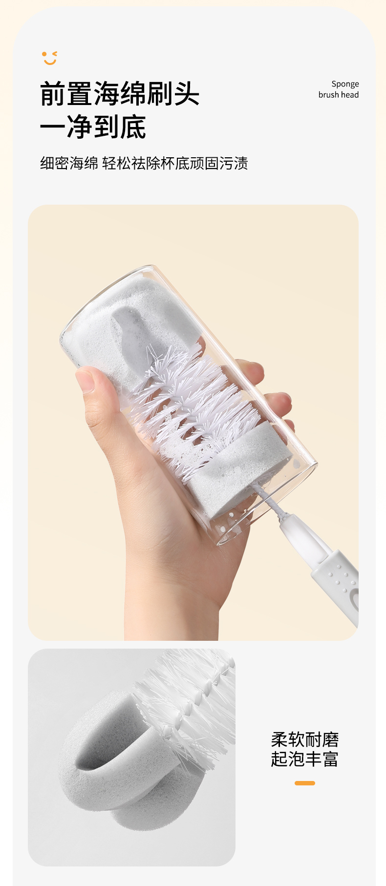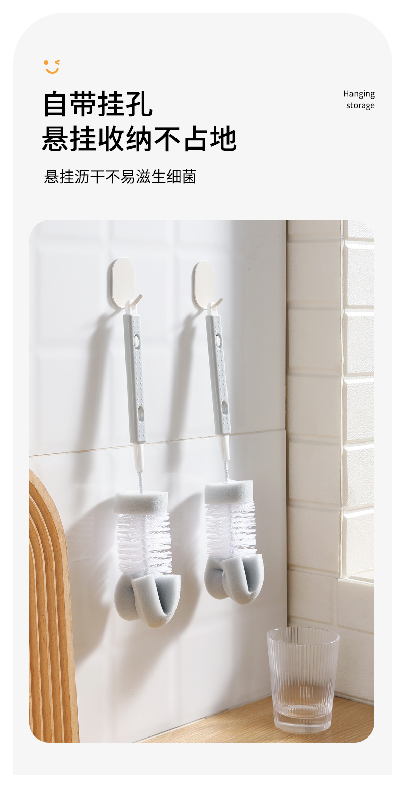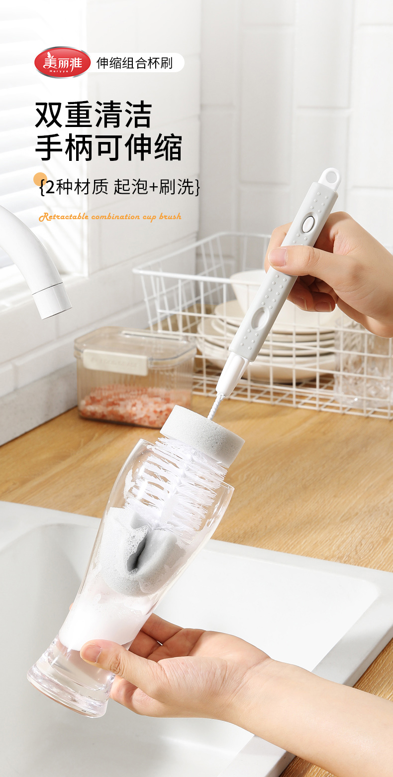 【批发】美丽雅长柄杯刷奶瓶刷洗杯子神器茶水杯海绵清洁刷 1把