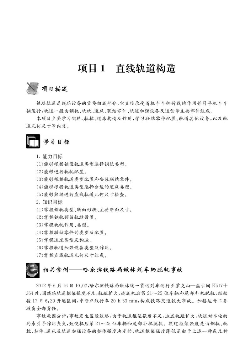 本书是高等职业教育铁道工程技术专业系列教材之一,较详细地介绍了直线轨道构造、曲线轨道设置、道岔构造与铺设施工、无缝线路构造与铺设施工。全书按项目—任务式体例编写,提高了本书的可操作性和实用性。本书为高职高专铁道工程技术专业学生用书,还可以作为高速铁路工程技术、土木工程及相关专业学生用书,亦可作为相关技术人员的岗位培训用书。