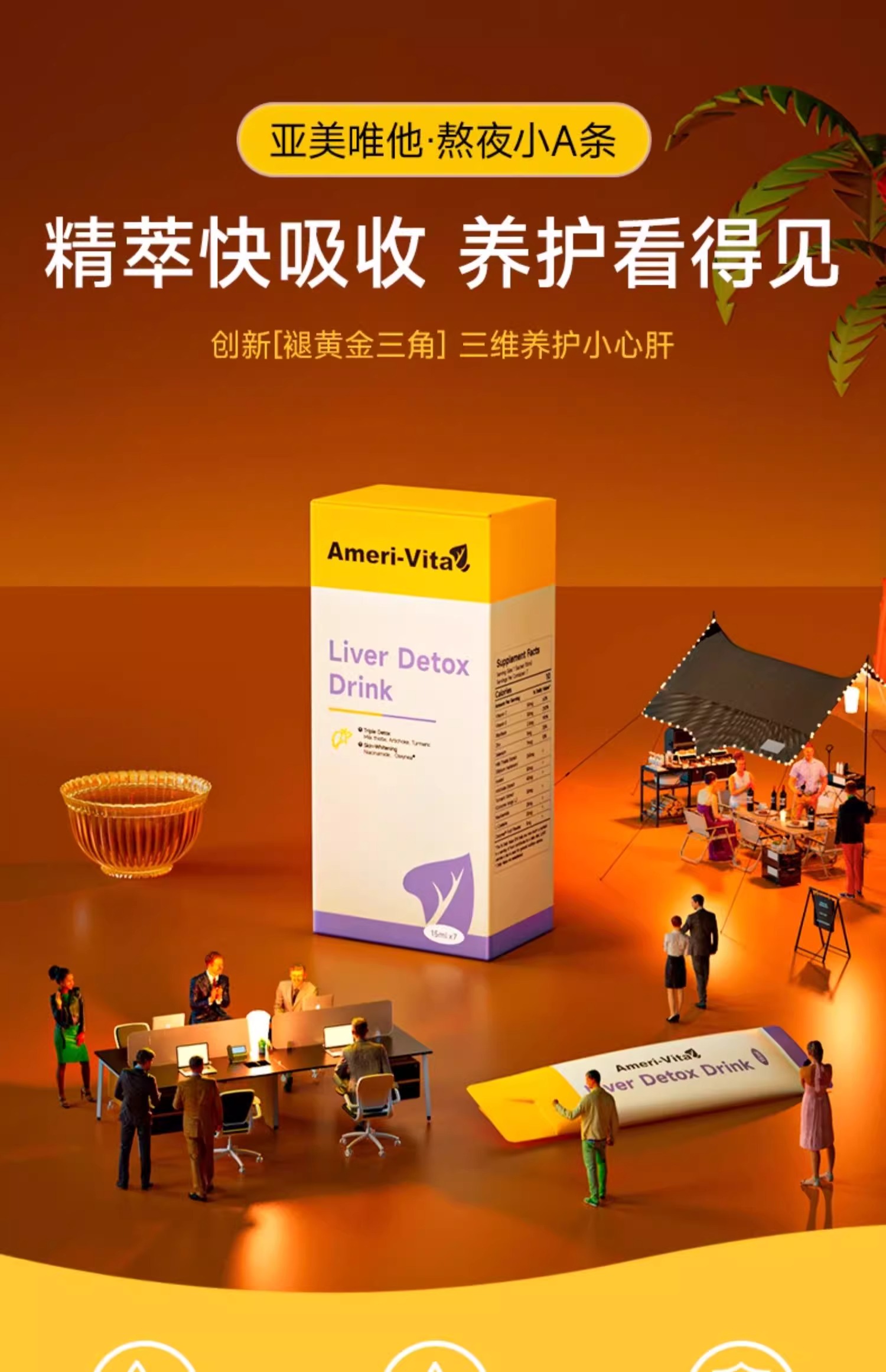 [体验装][AMeri vita]亚美唯他 护肝饮 7条/盒 净旰水飞蓟奶蓟草姜黄解酒熬夜养肝正品