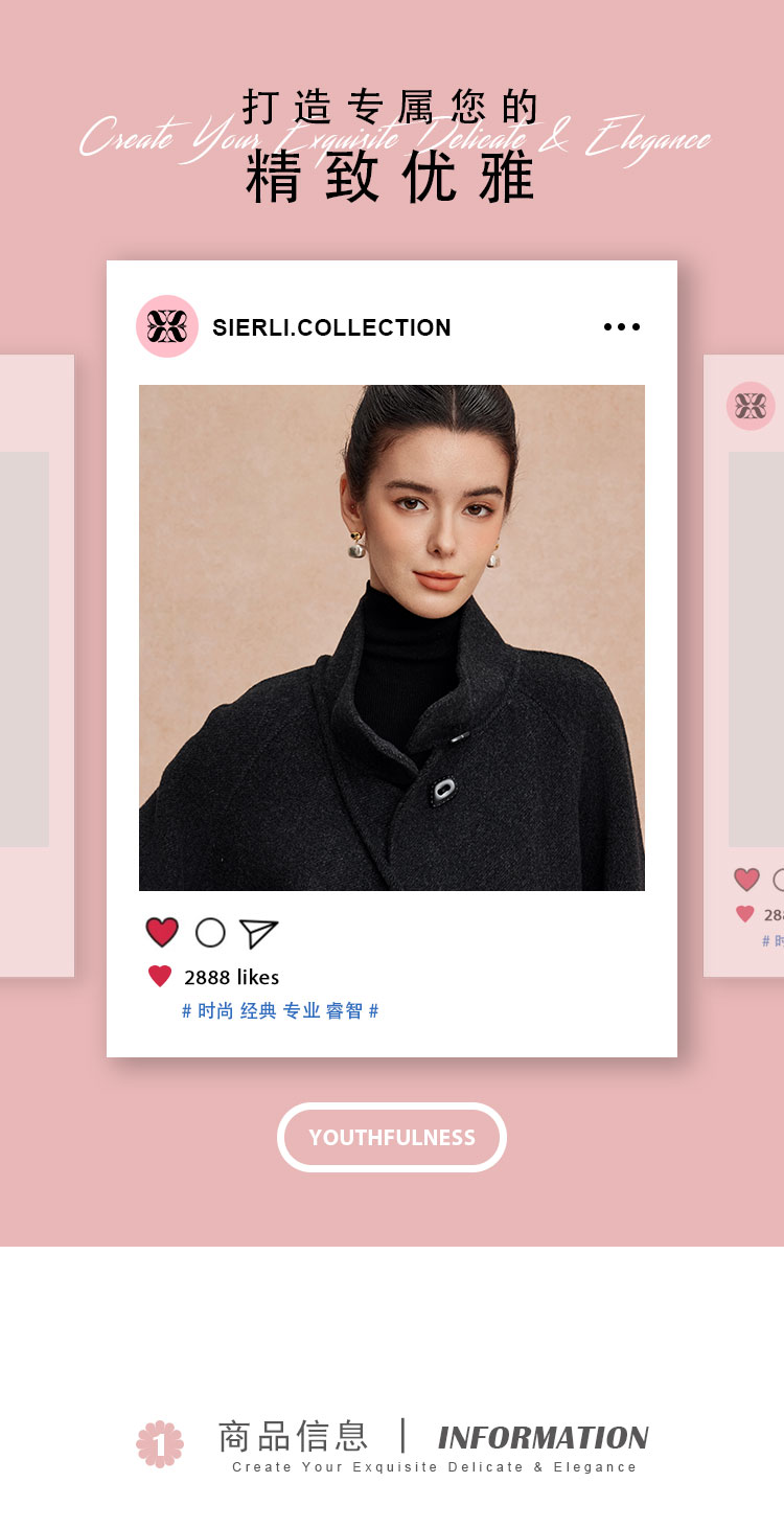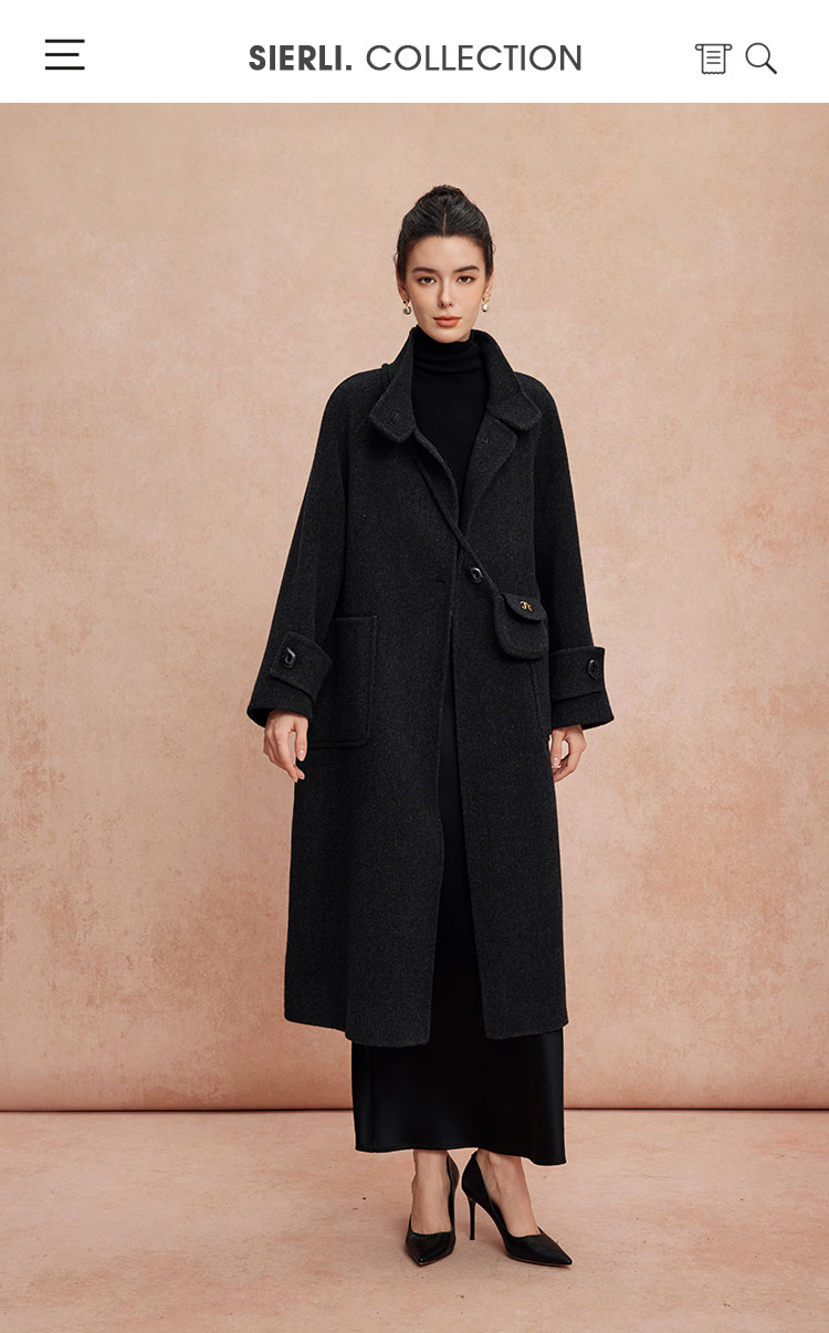 QH942斯尔丽2025新款含山羊绒羊毛大衣廓形松弛配斜跨小包长款大衣