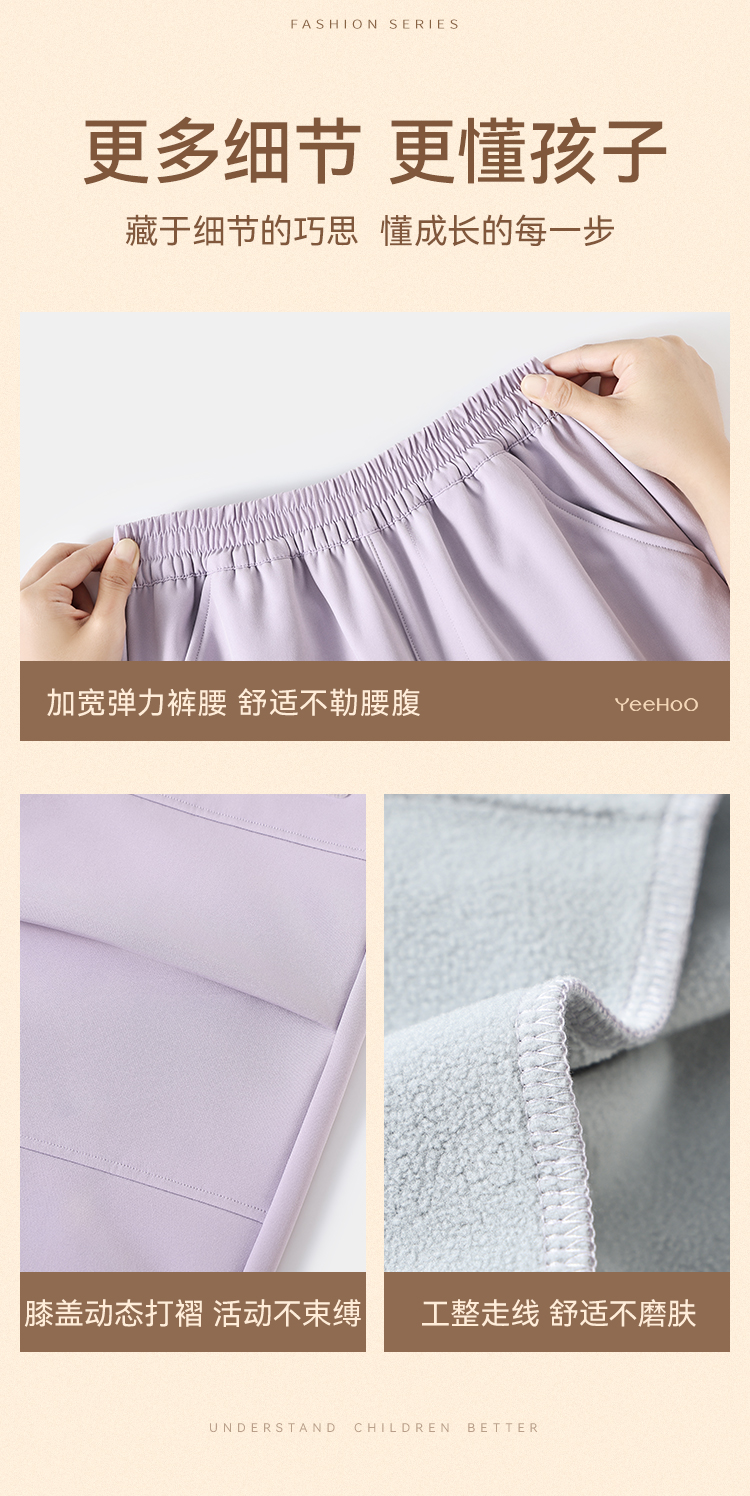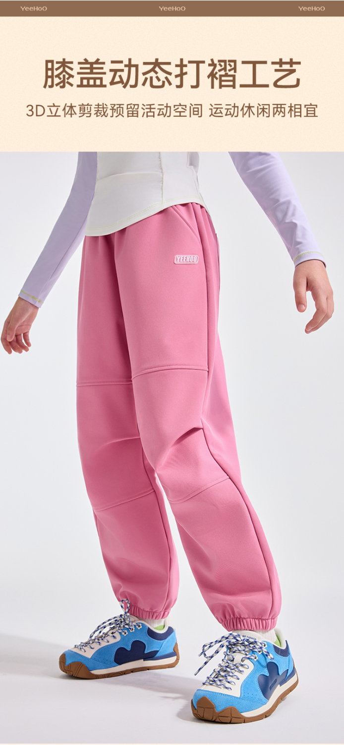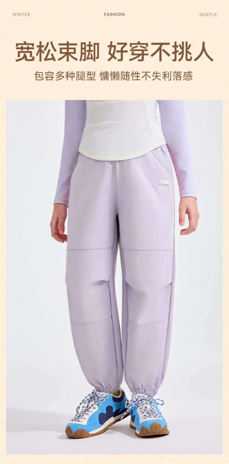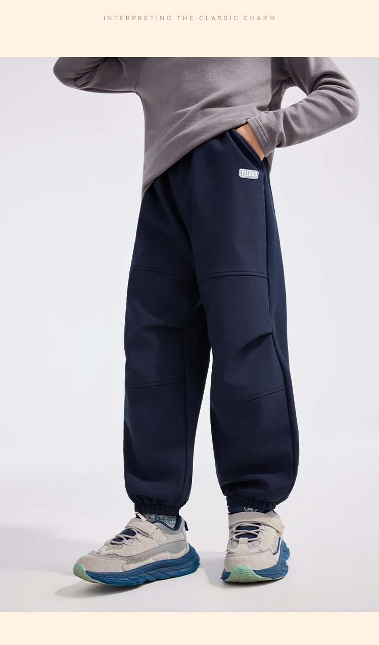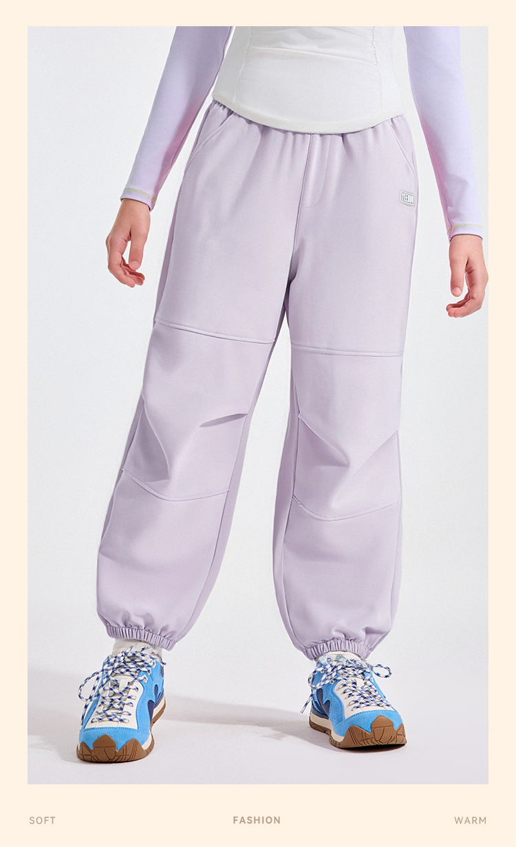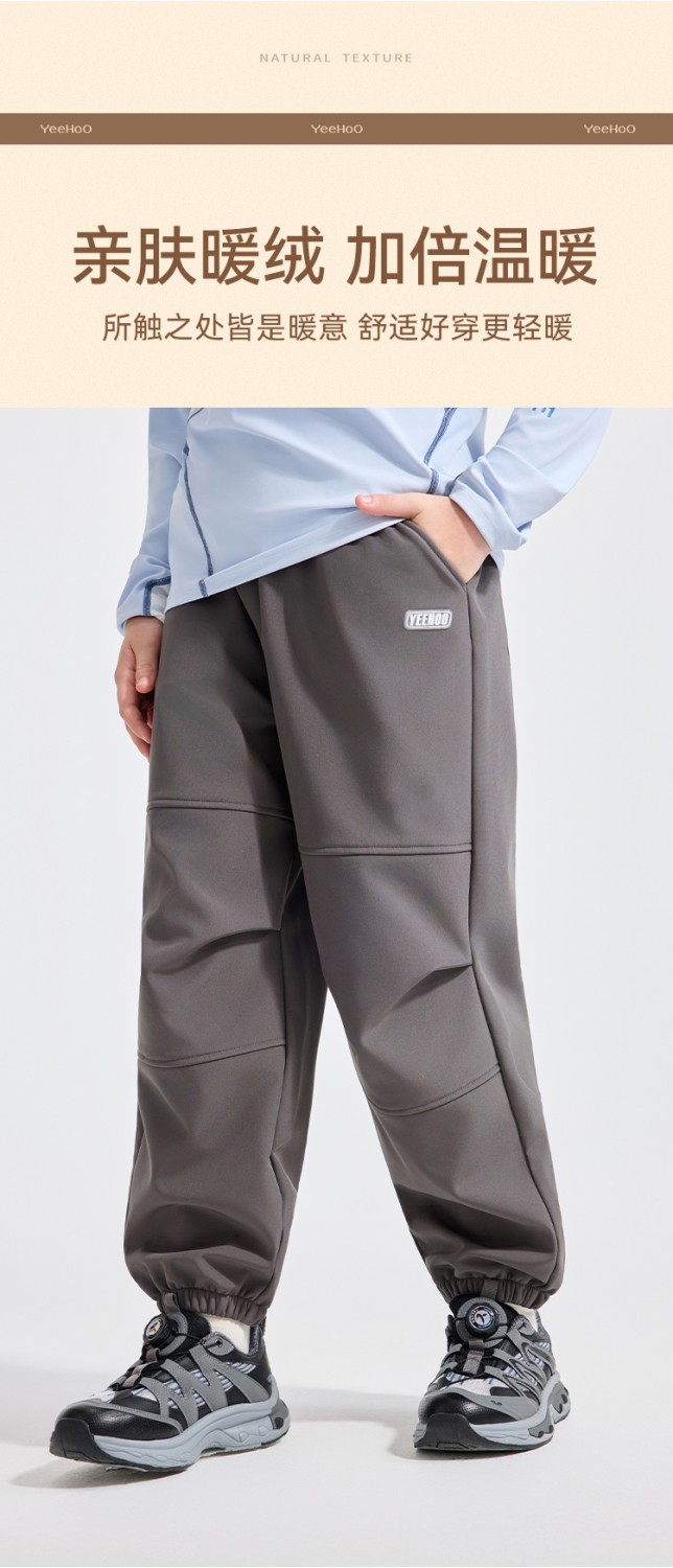 【英氏】【加绒防风+防泼水软壳裤】【110-160】男女童冬款加绒长裤
