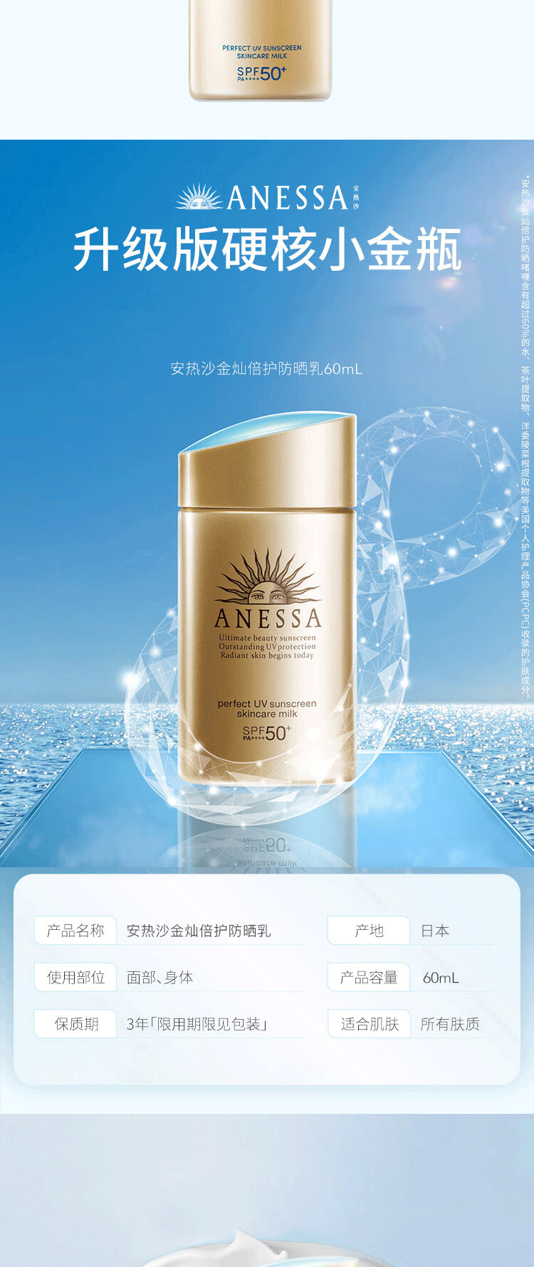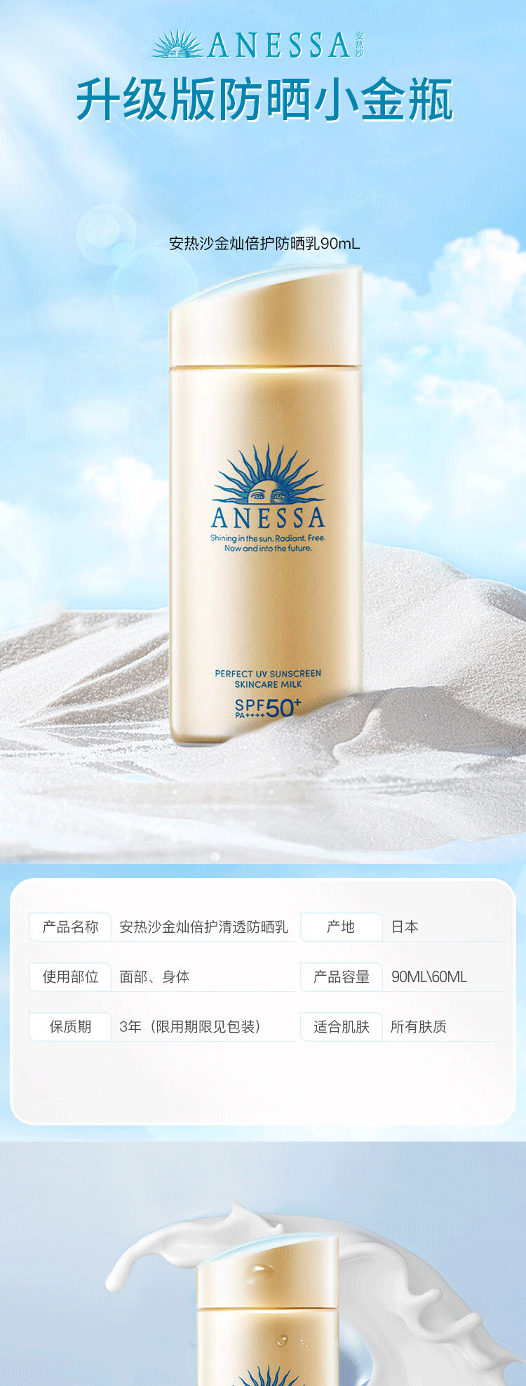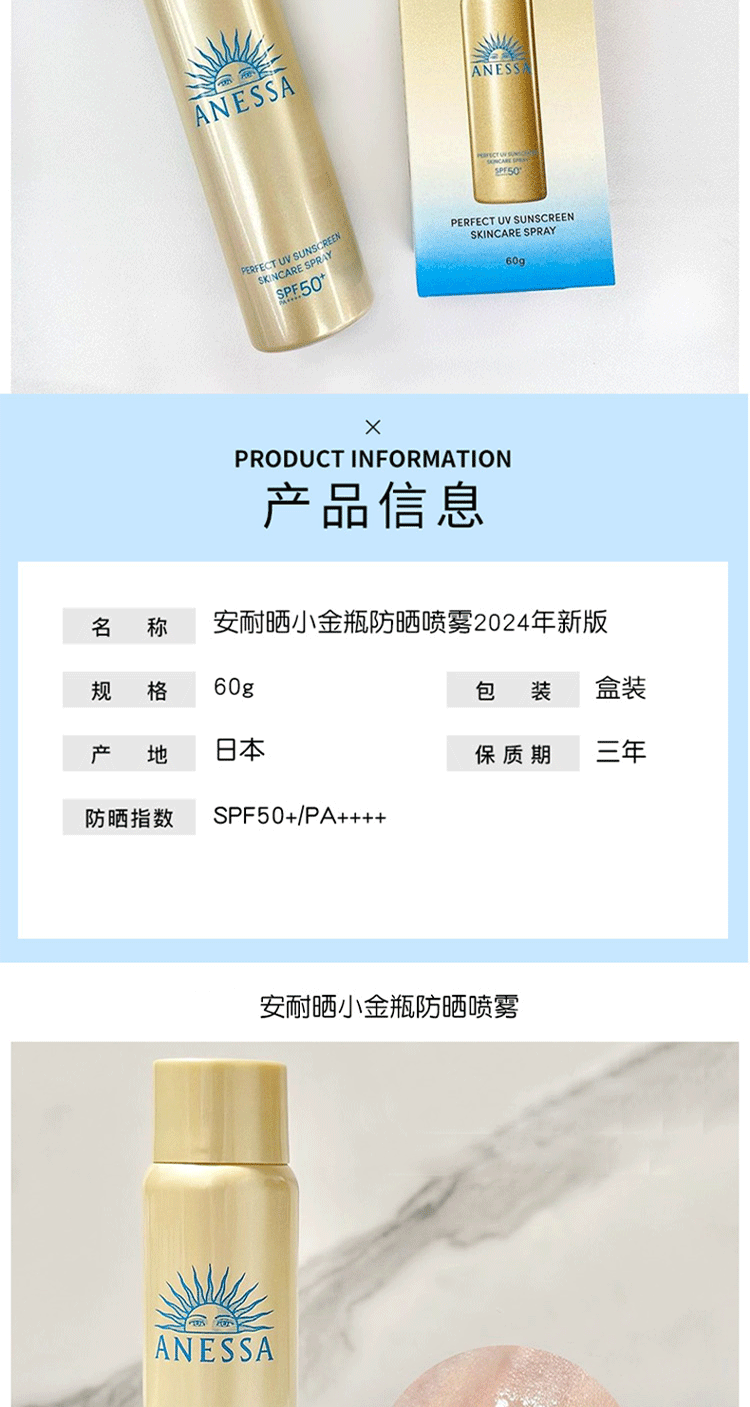【小金瓶防晒霜防晒喷雾】Anessa安热沙安耐晒防晒霜60ml/90ml安耐晒防晒小金瓶喷雾60g一般贸易
