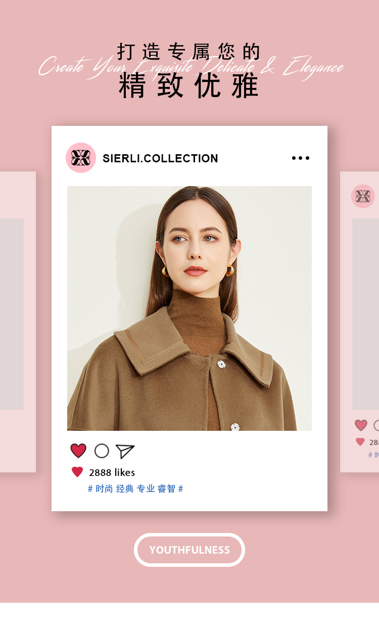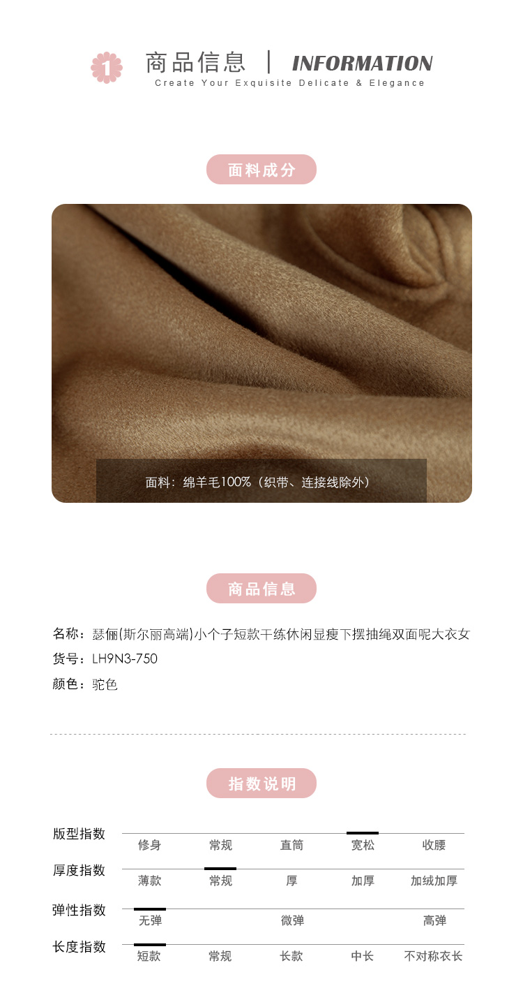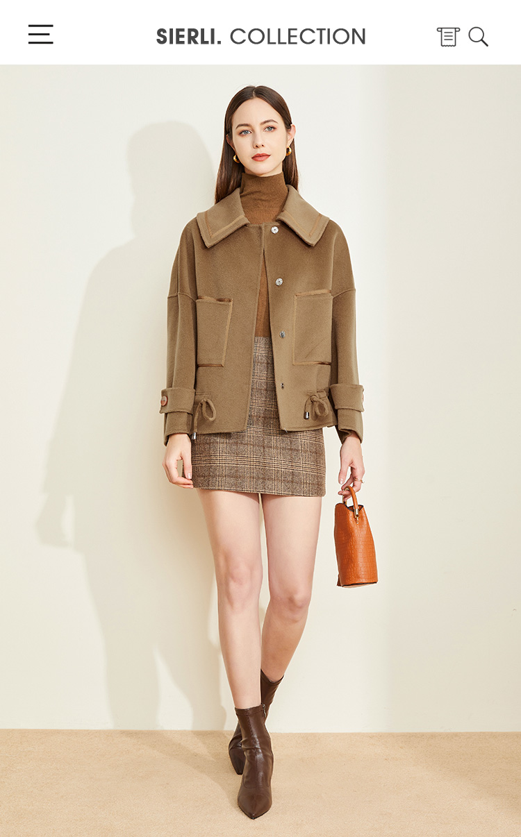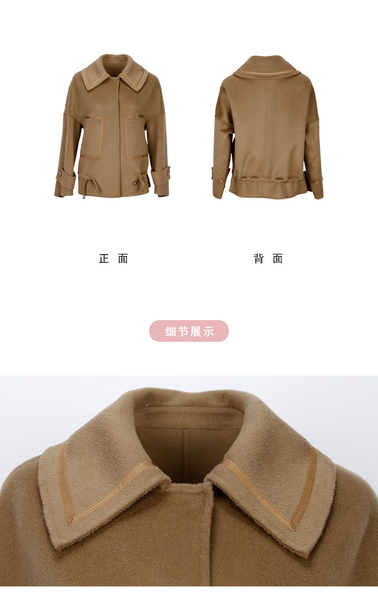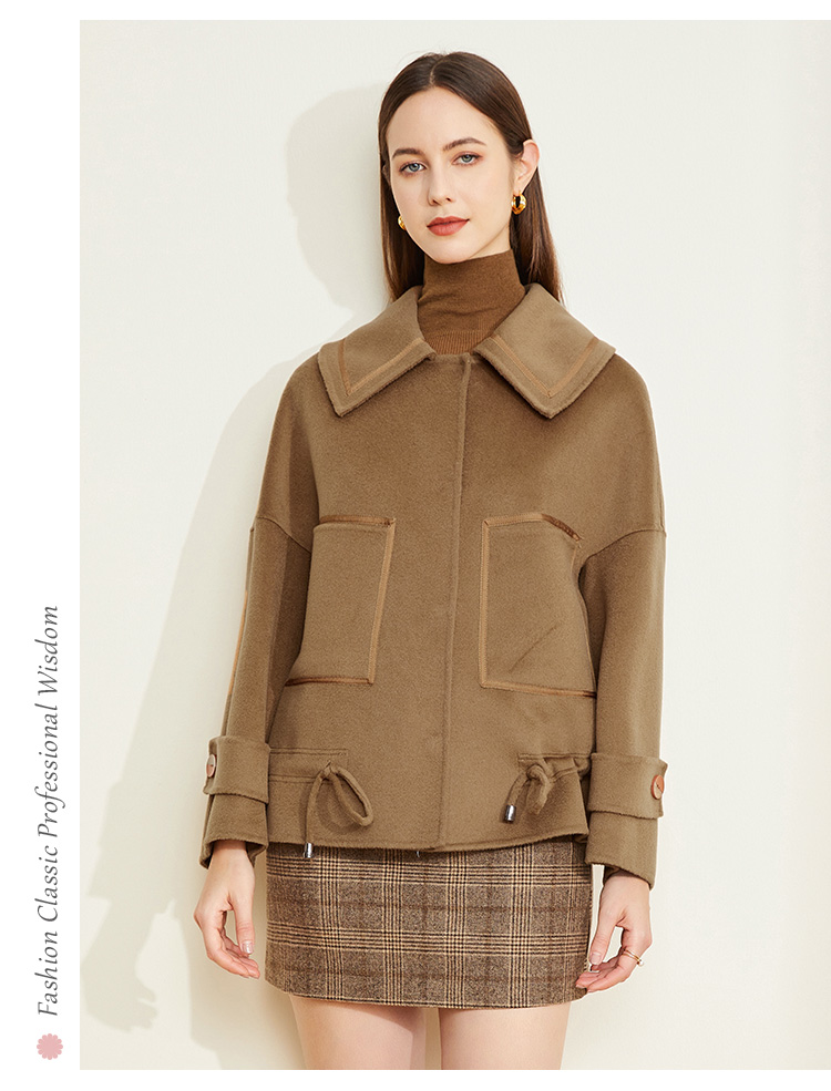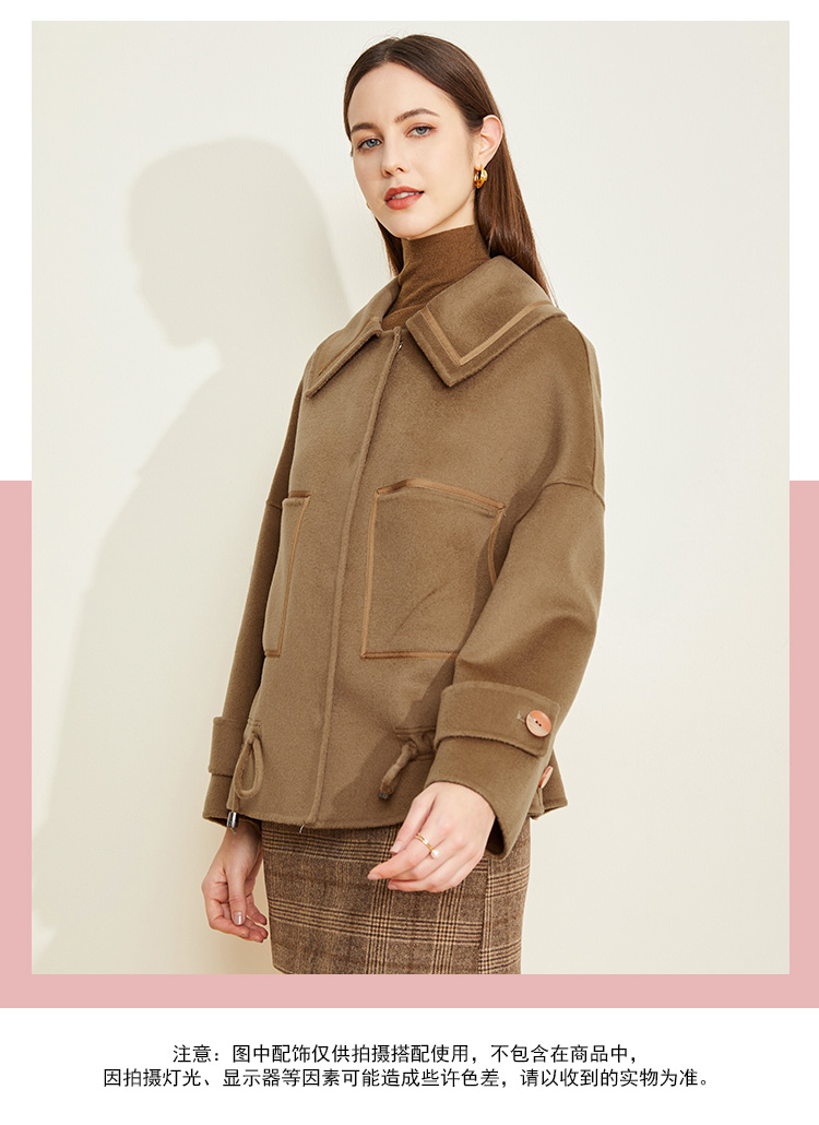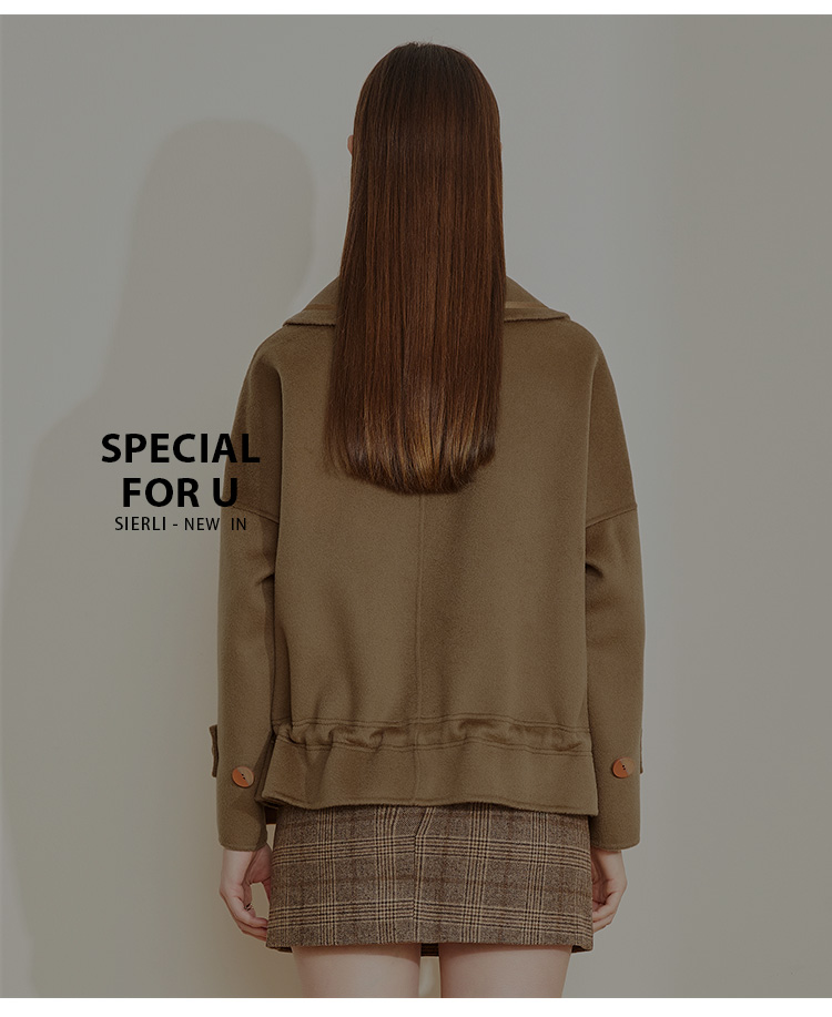 LH9N3斯尔丽2021瑟俪秋冬新款小个子短款干练显瘦下摆抽绳双面呢大衣女