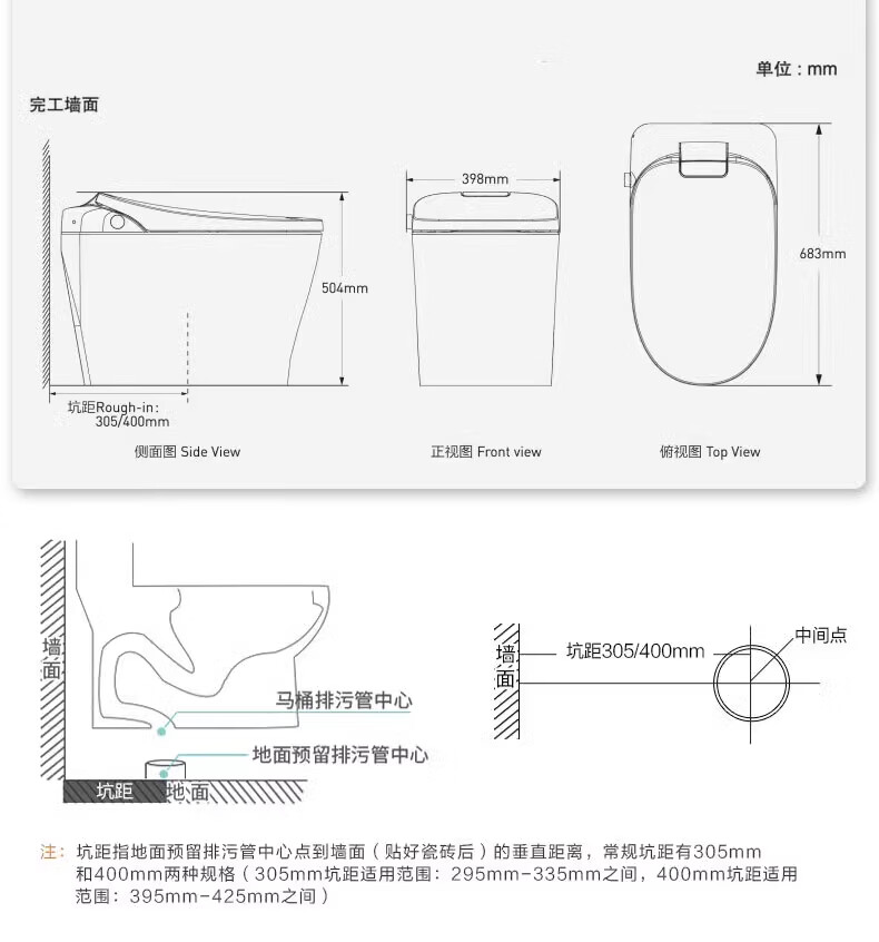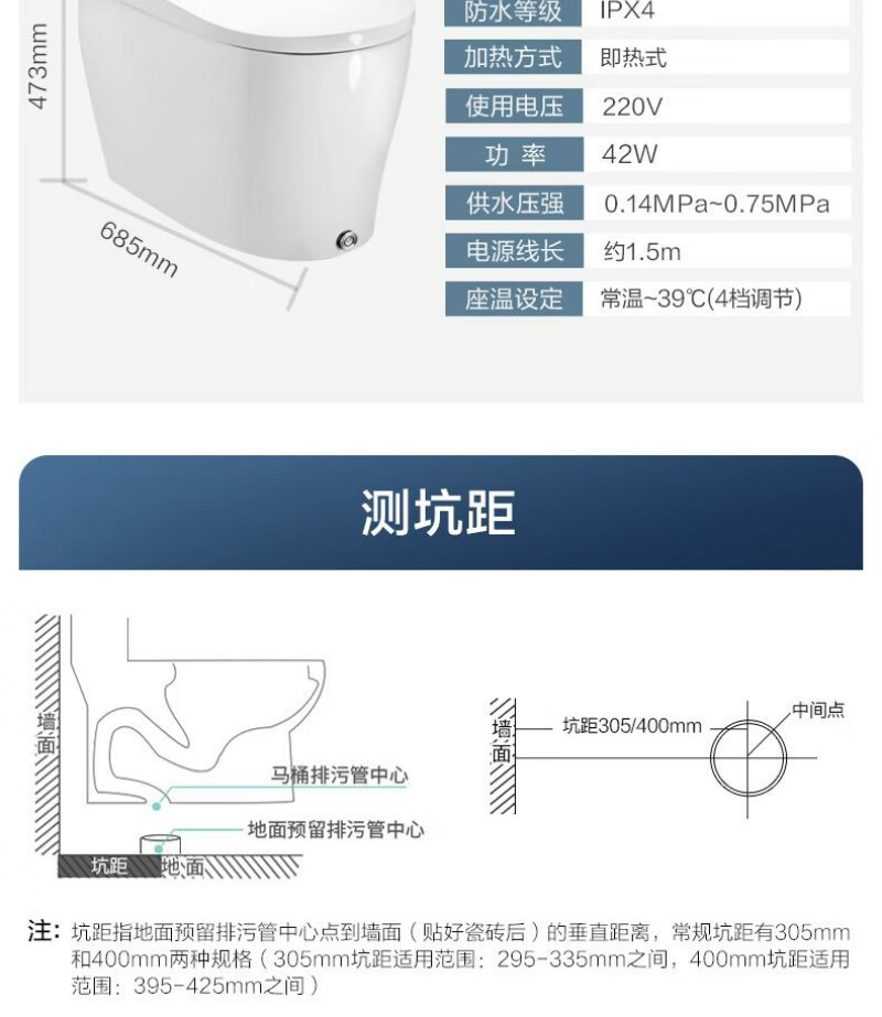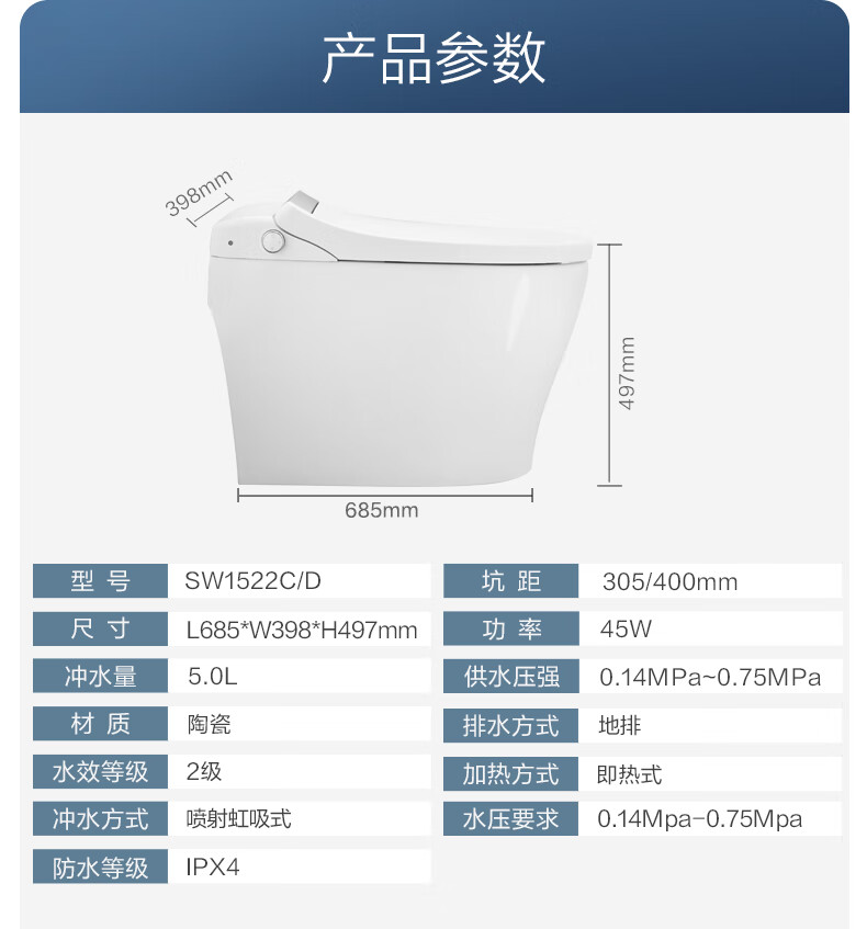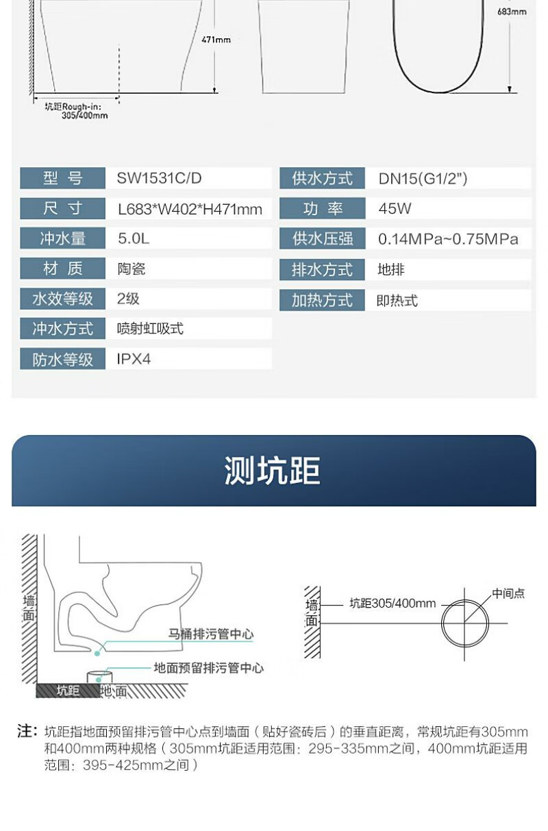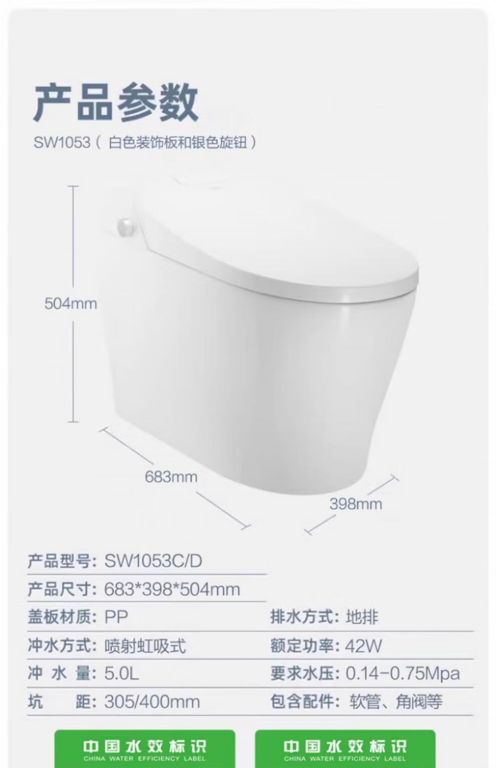 摩恩轻智能一体坐便器家用厕所浴室虹吸马桶脚踢SW1542CL/DL