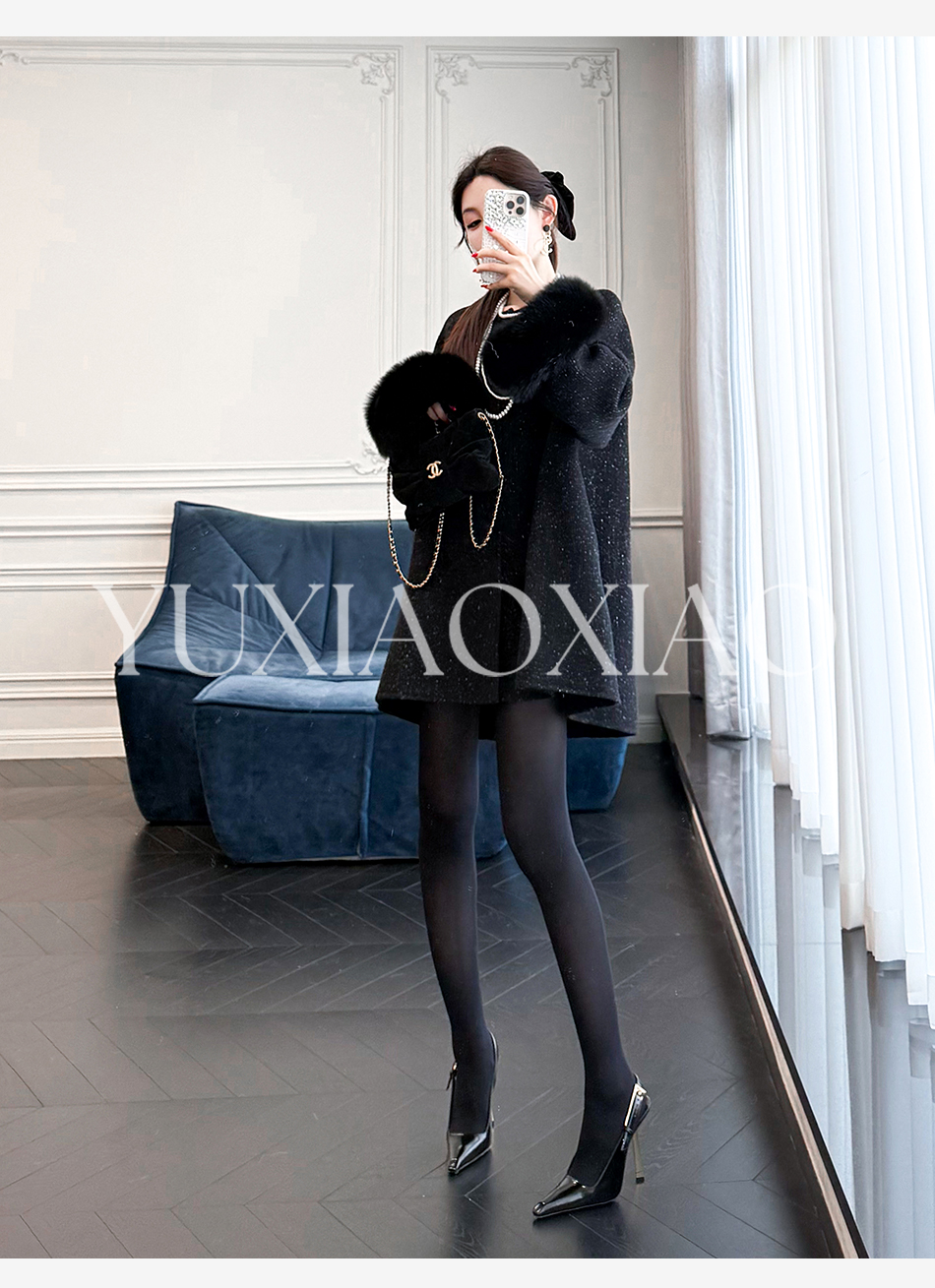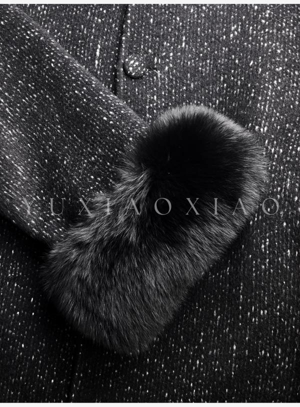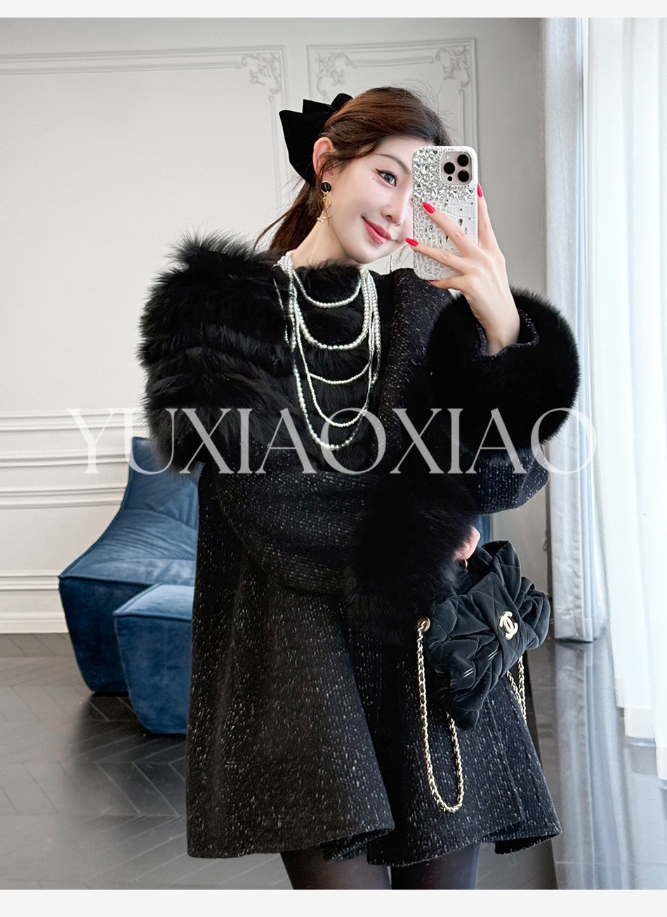 余潇潇【粉黛倾城】羊驼毛绵羊毛肌理感可拆卸狐狸毛披肩袖子大衣