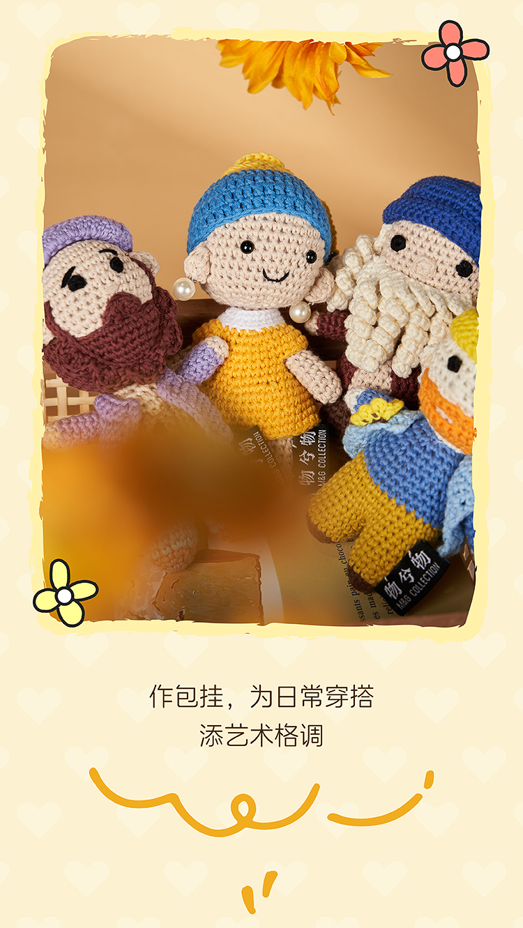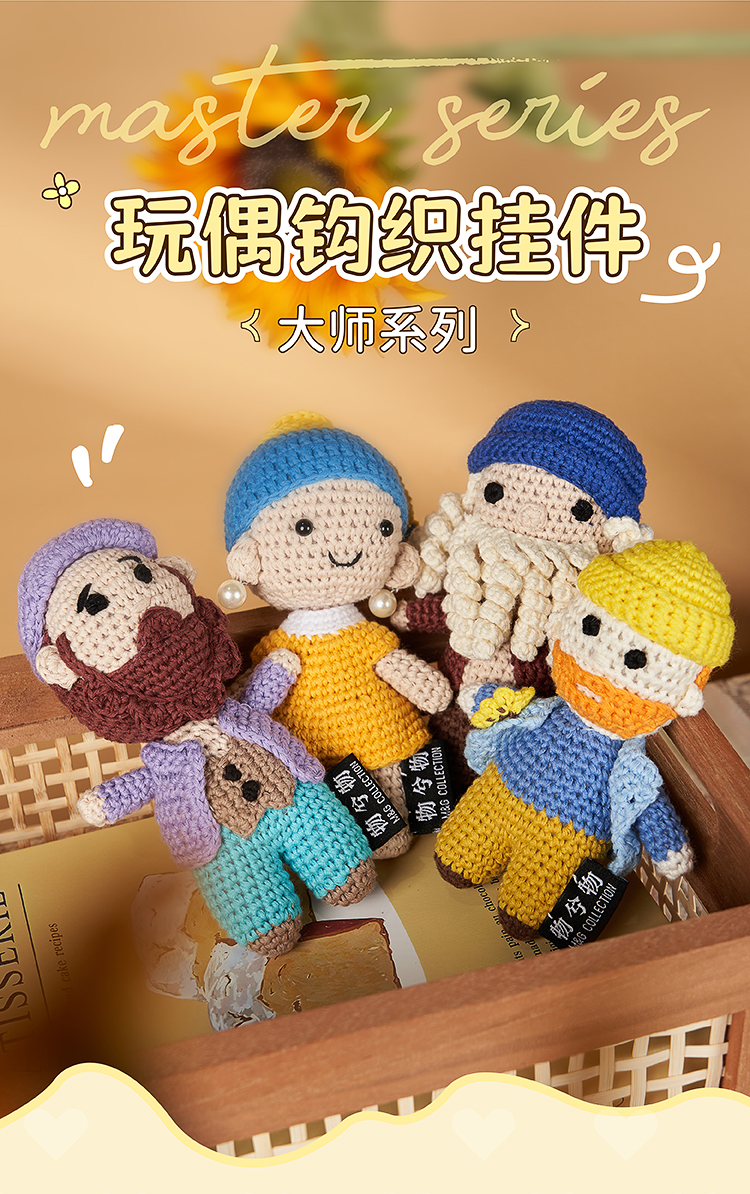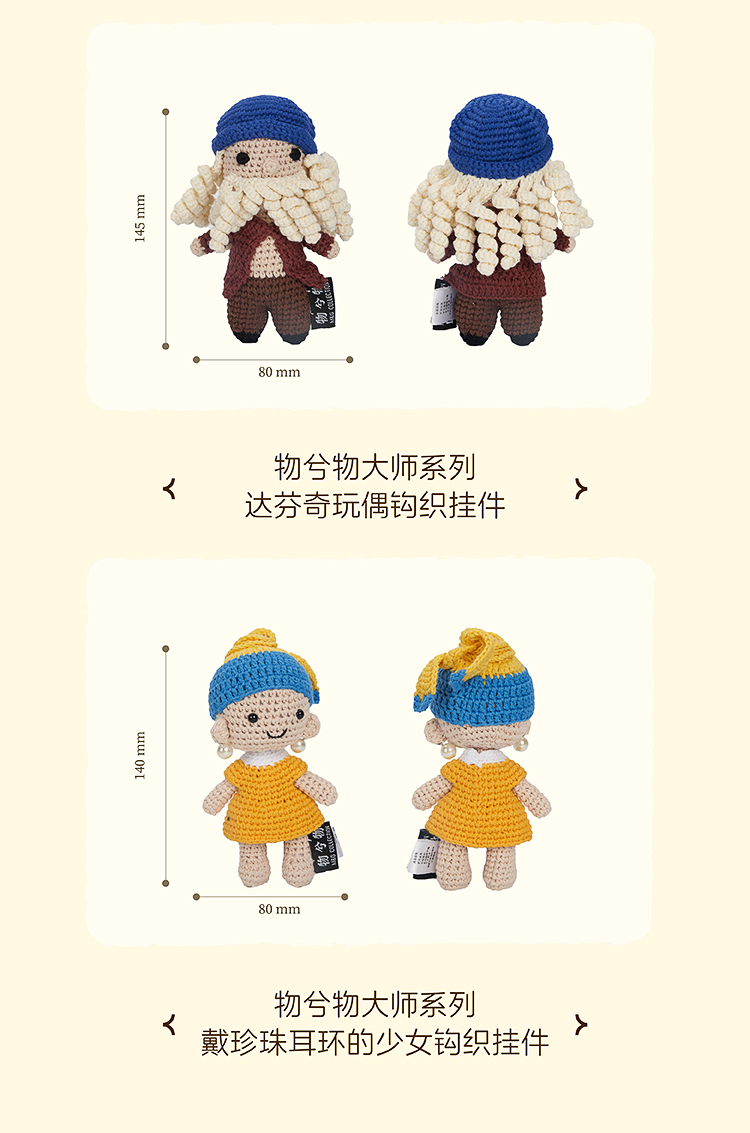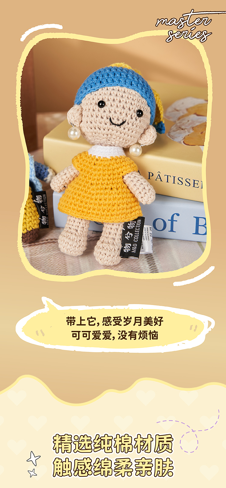 物兮物大师系列 梵高 莫奈 达芬奇玩偶 戴珍珠耳环的少女钩织挂件
