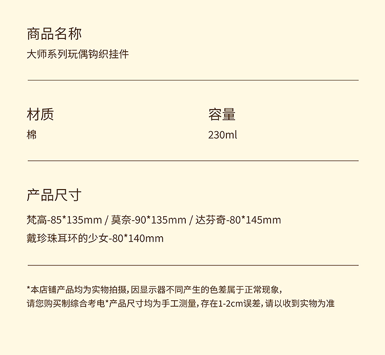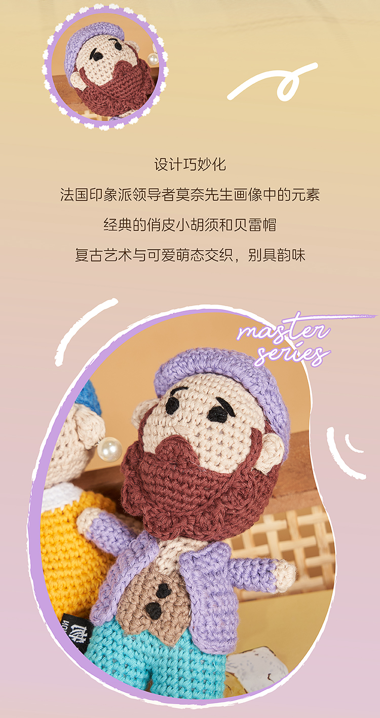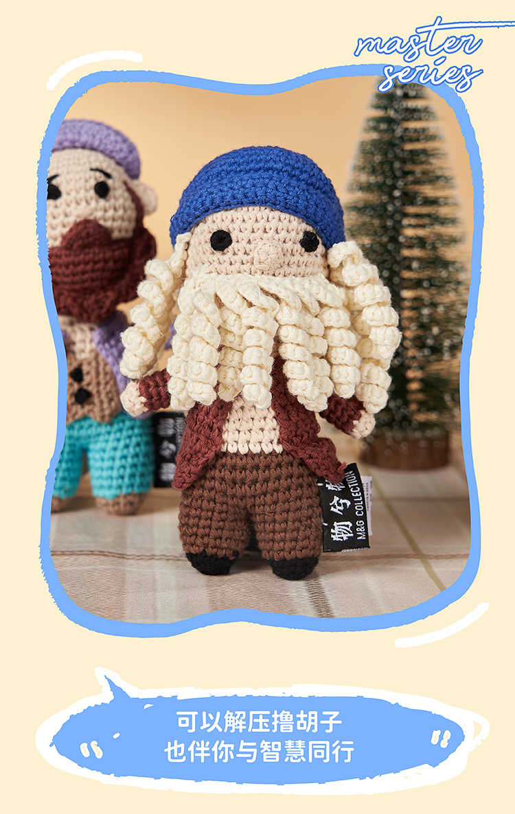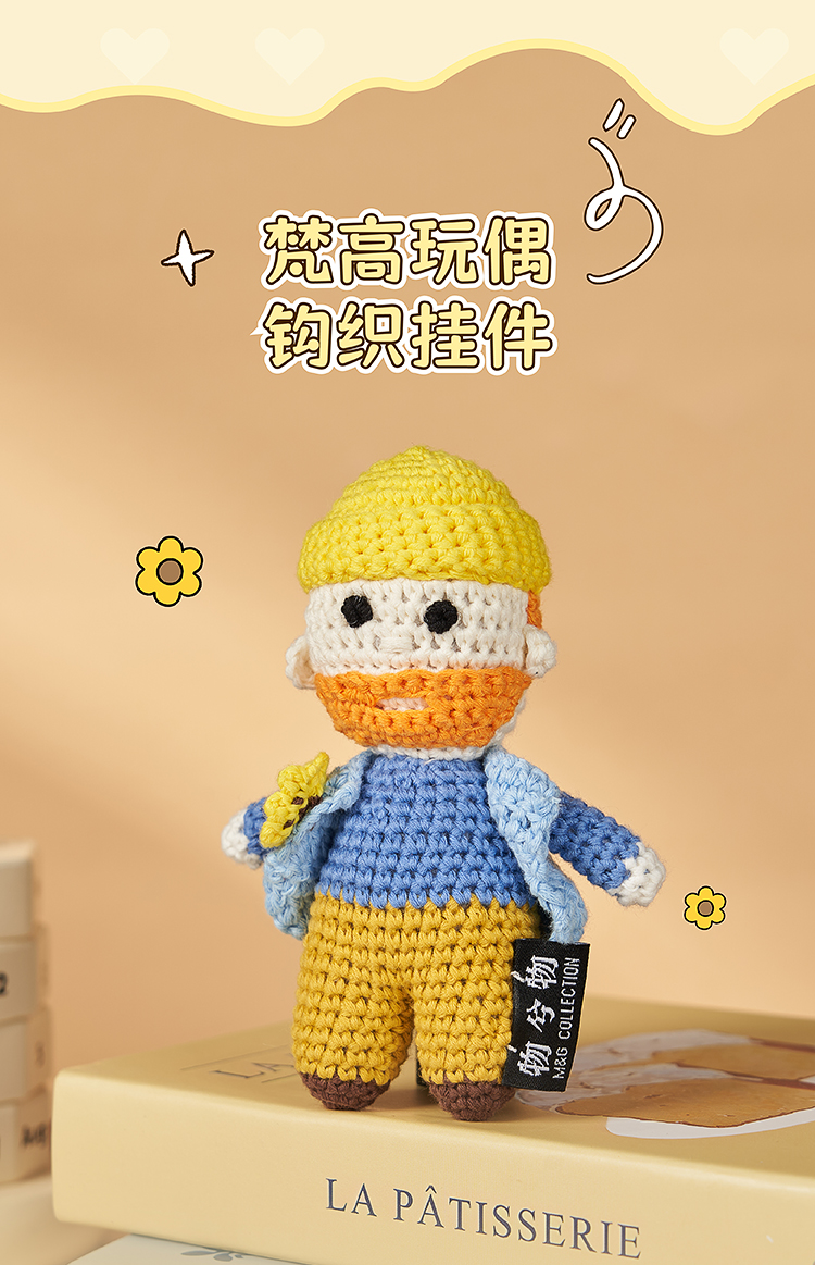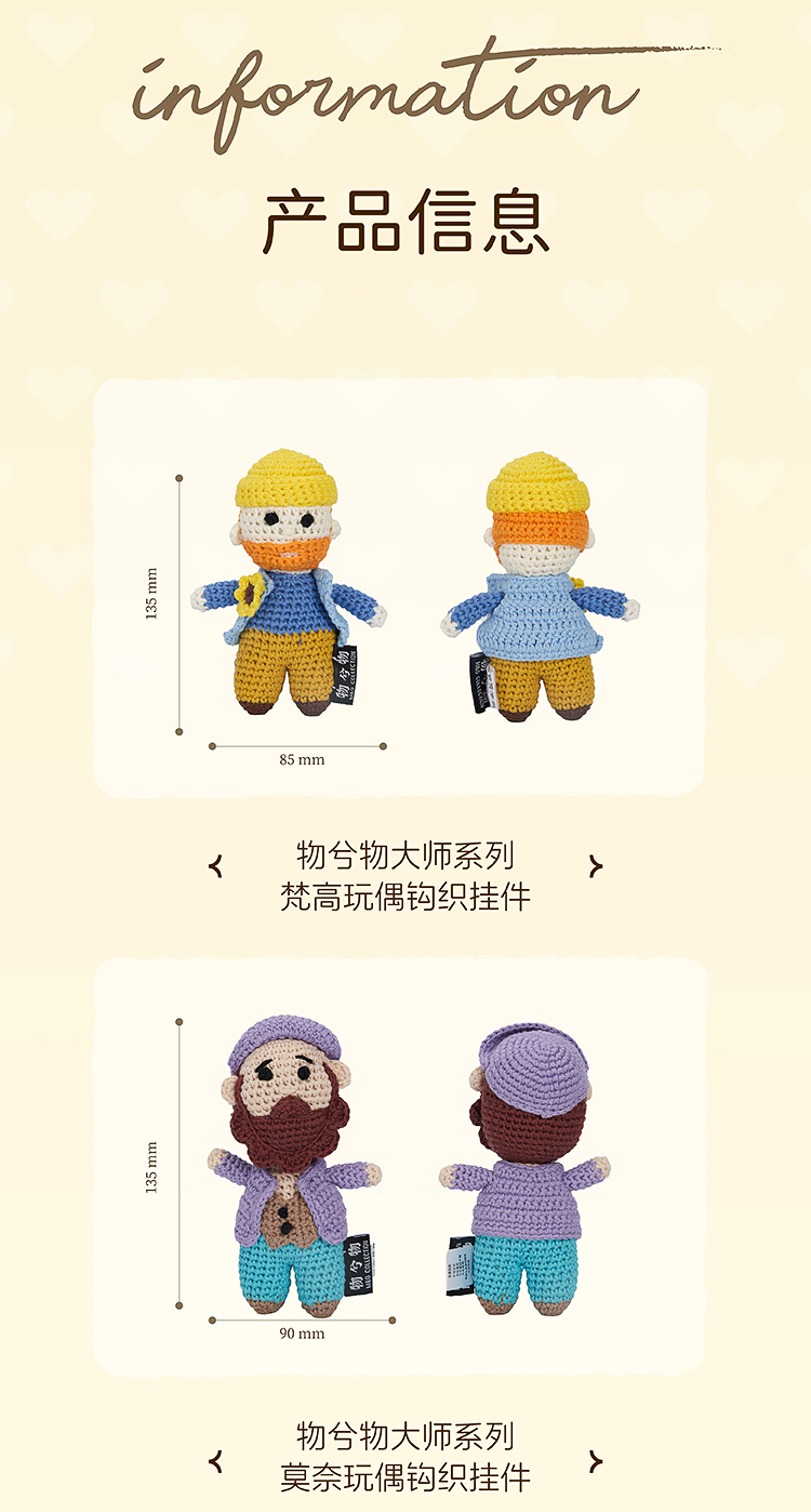 物兮物大师系列 梵高 莫奈 达芬奇玩偶 戴珍珠耳环的少女钩织挂件
