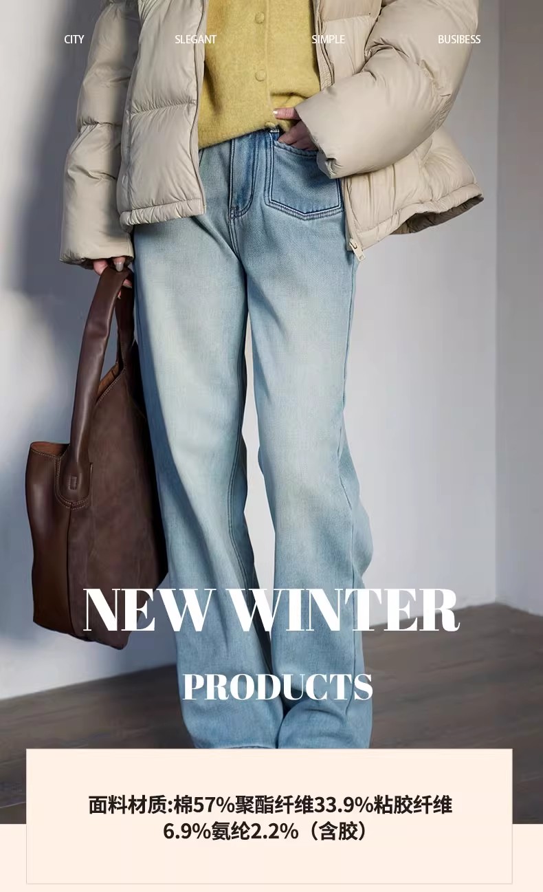 【门店同款】ENJOY冬季双口袋加绒直筒裤 160446394