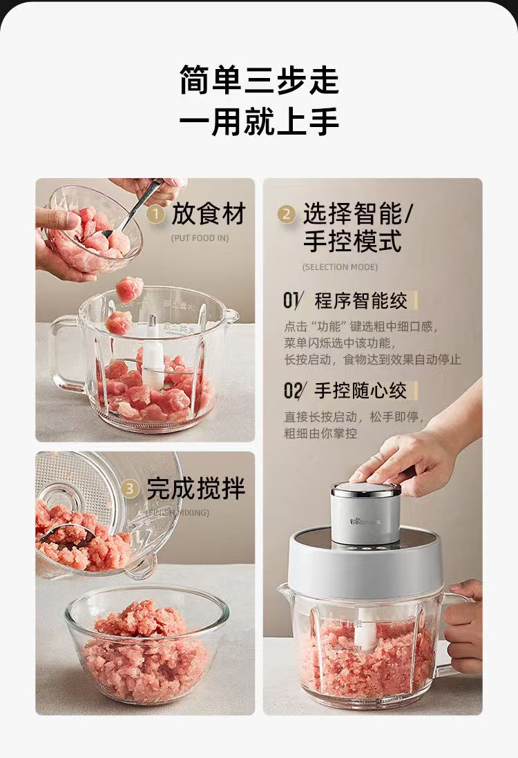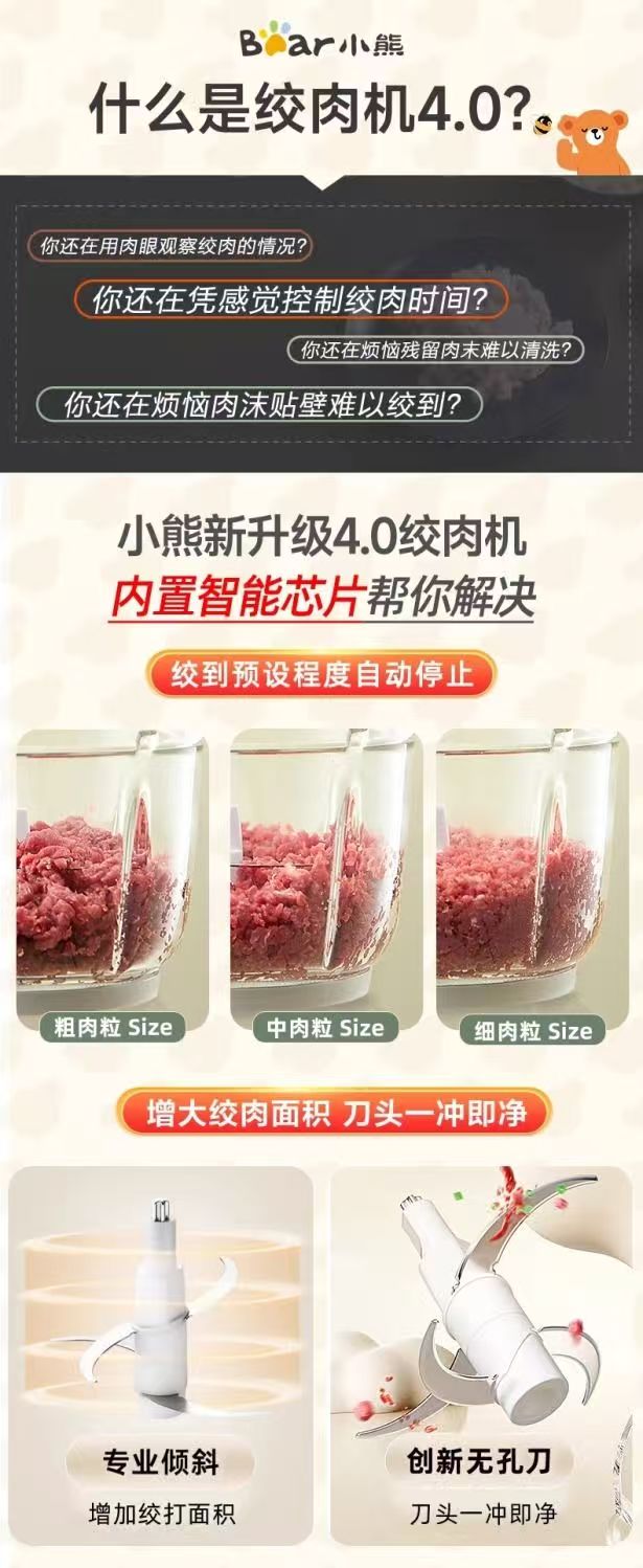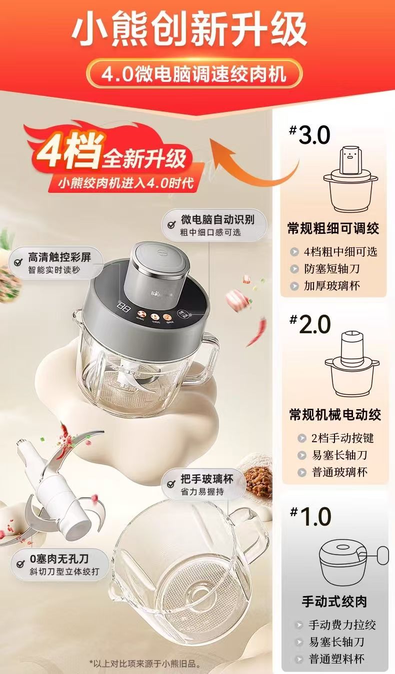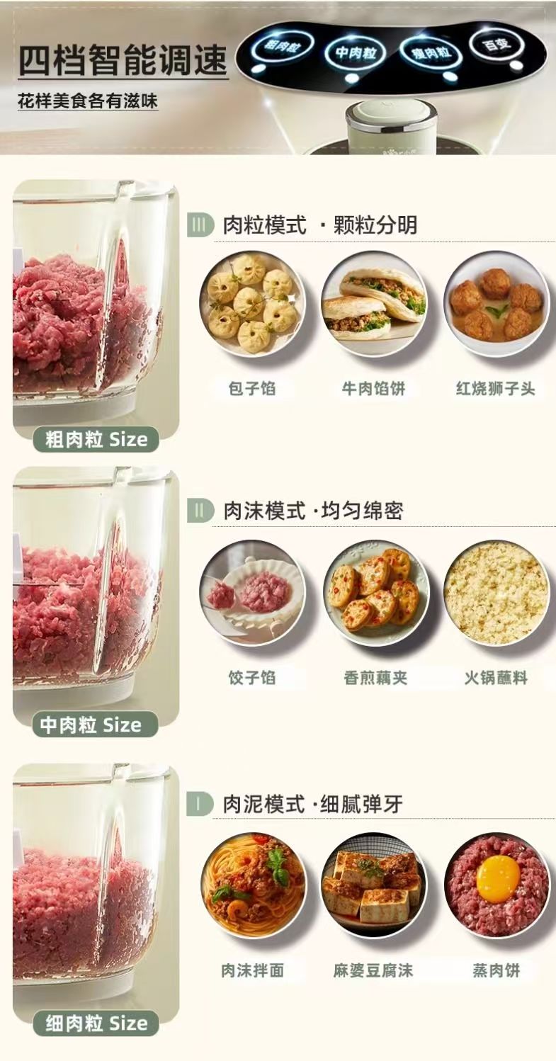 小熊绞肉机家用电动小型搅拌机全自动多功能肉馅可调粗细
