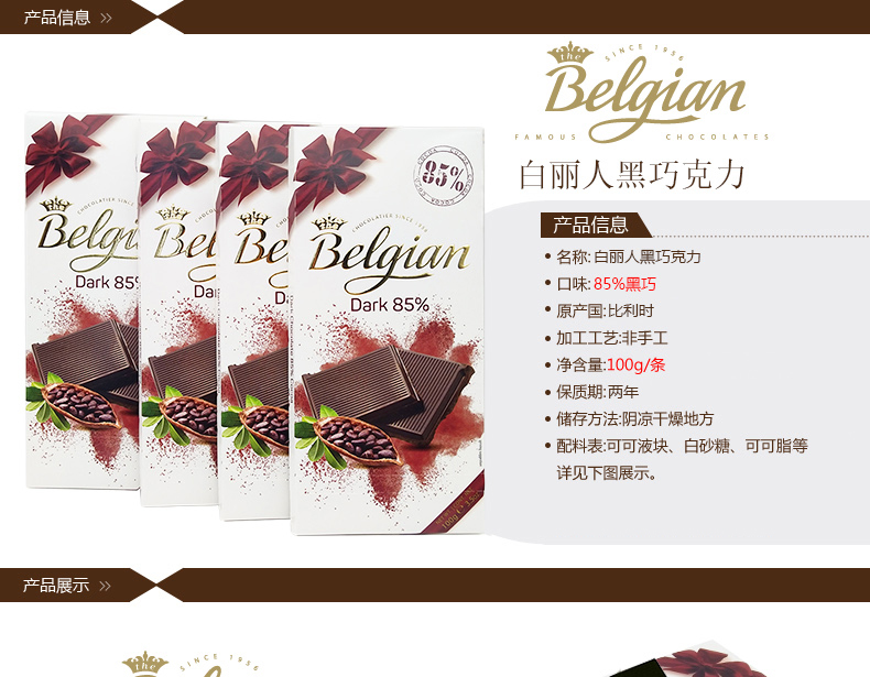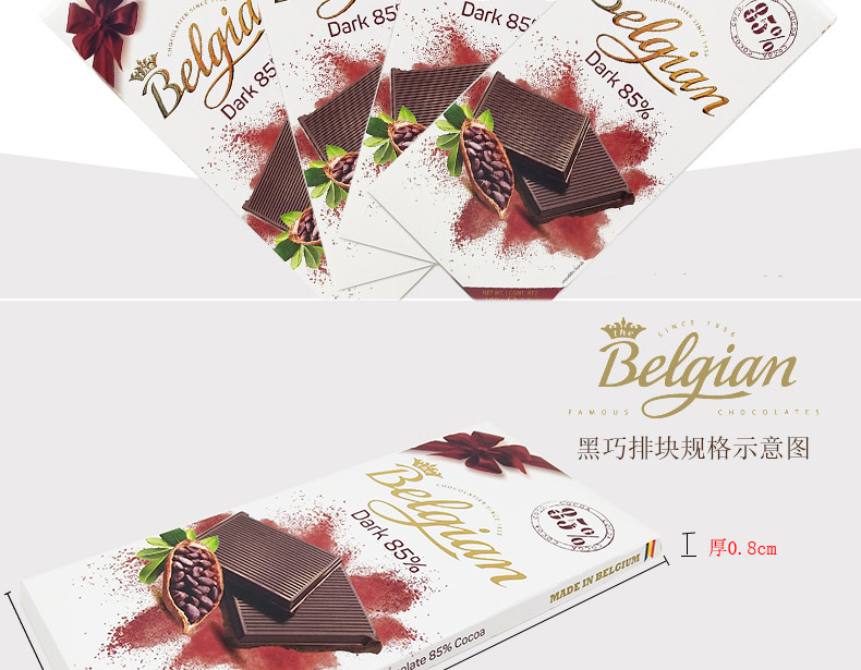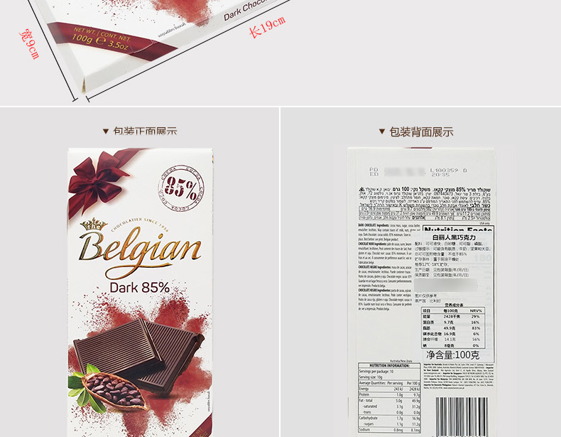 比利时白丽人黑巧克力系列100g 85%/90% 来自比利时的丝滑美味 042303/042304