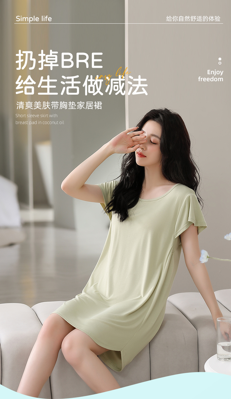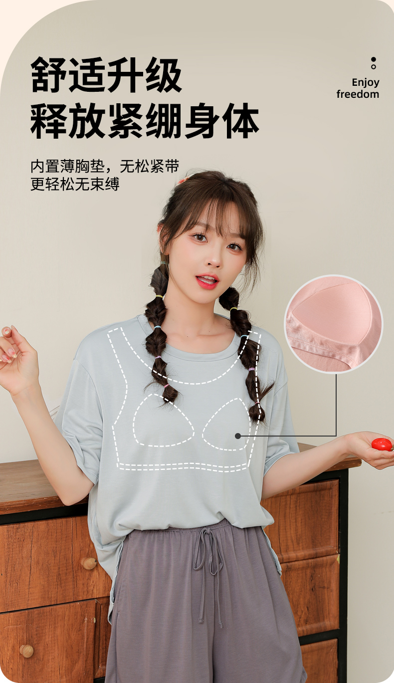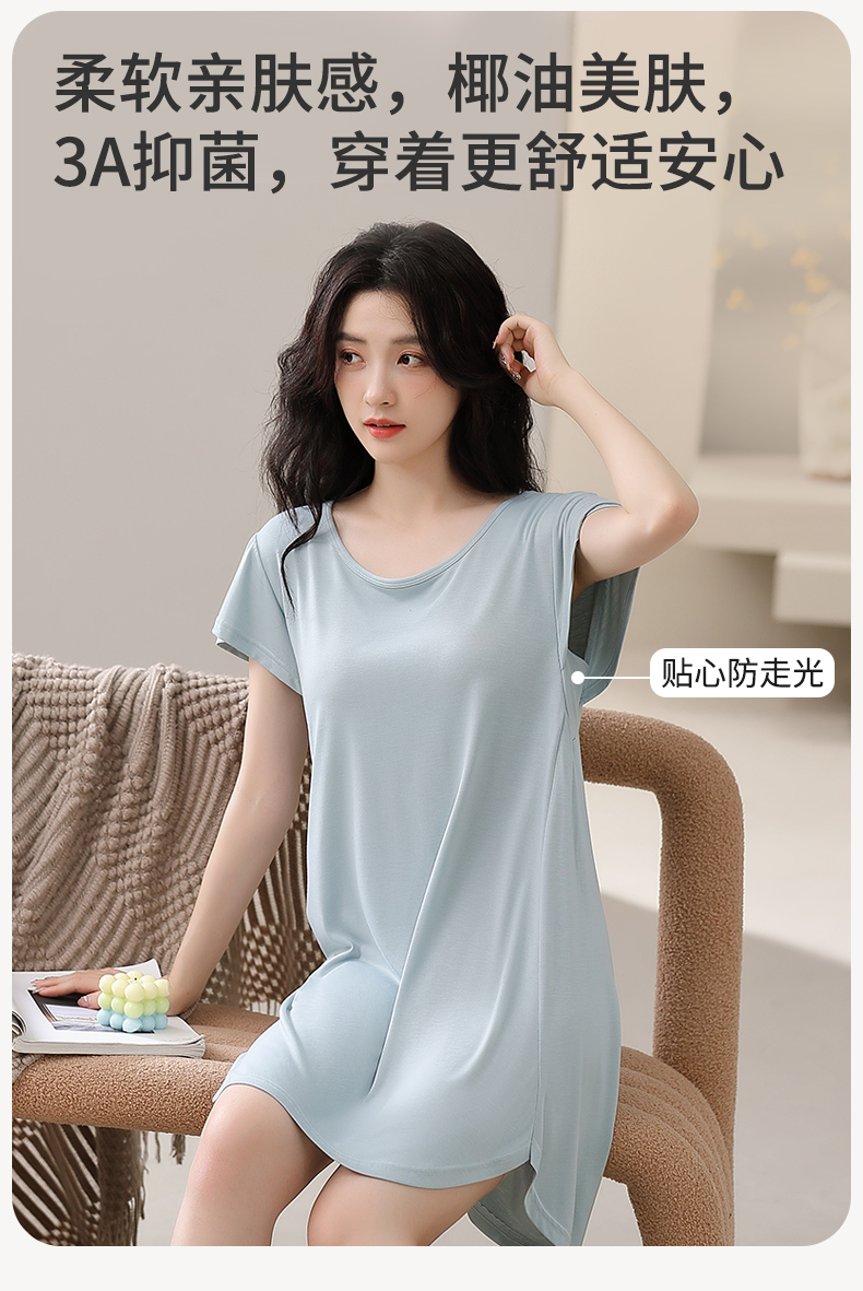 ³太舒服了【带胸垫的家居服】睡裙&短袖套装 防凸点防腋下走光(仅遮点不包裹不承托) XN03-CRMM-FH