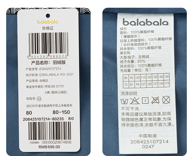 巴拉巴拉balaOne儿童羽绒服女童男童2025年中长款冬季厚保暖外套