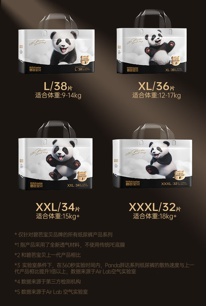 碧芭宝贝胖达2代系列纸尿裤4包