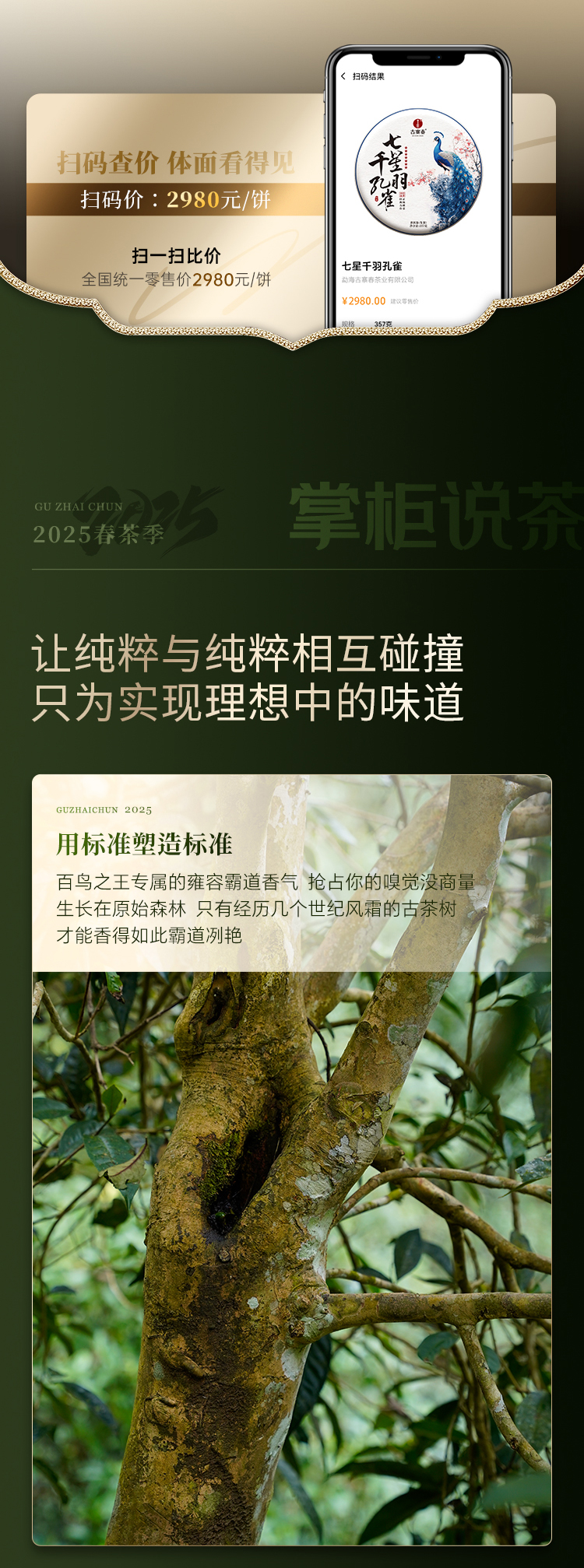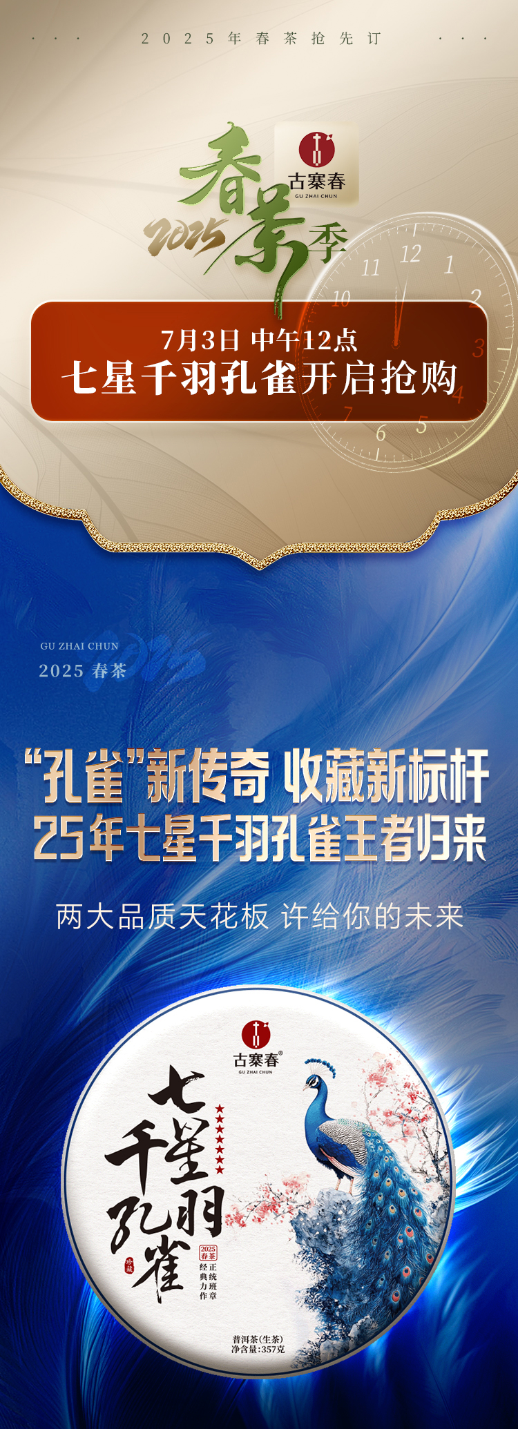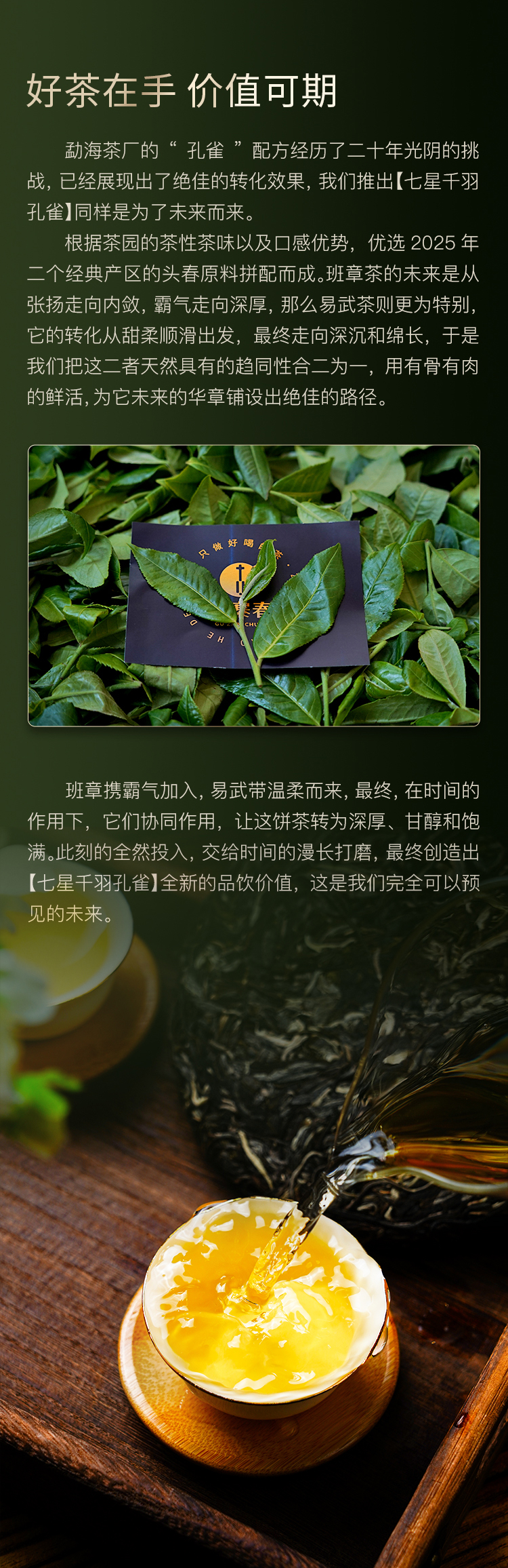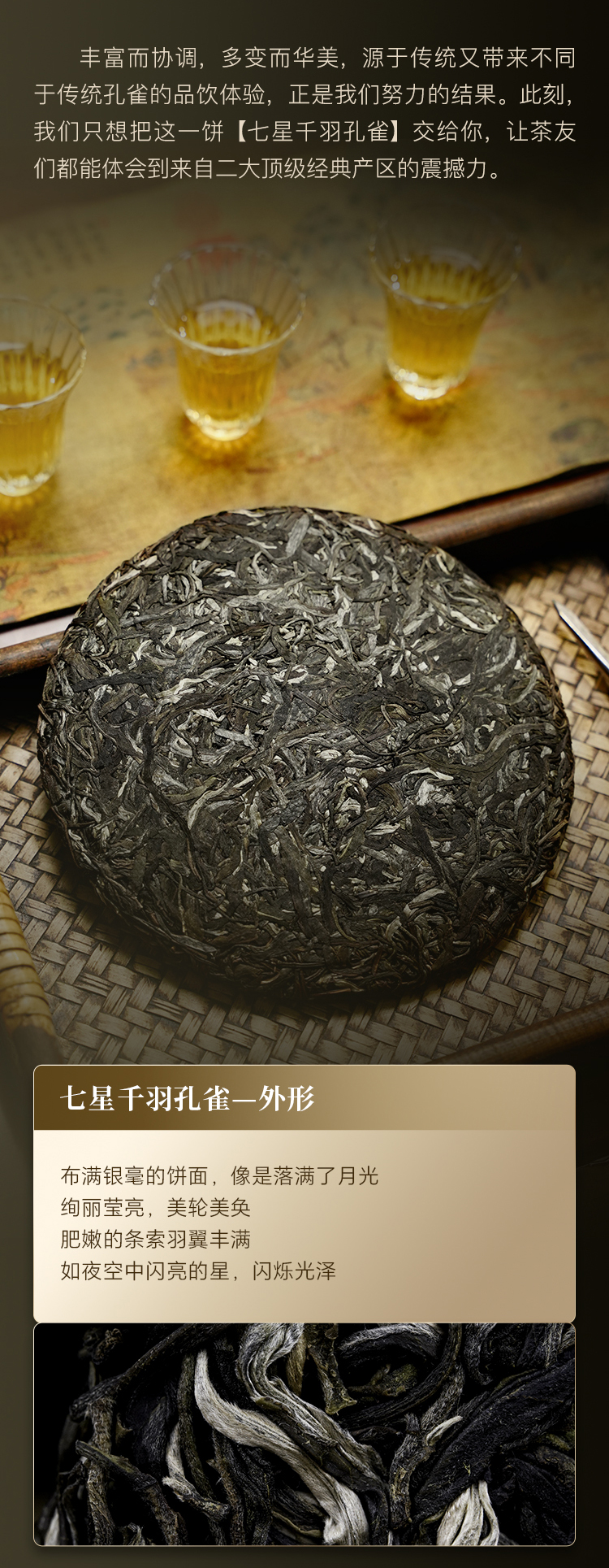 【重磅首发】【七星千羽孔雀】2025年从经典走向经典,创造新的老味‘孔雀’普洱茶生茶357克/饼 拍5发6
