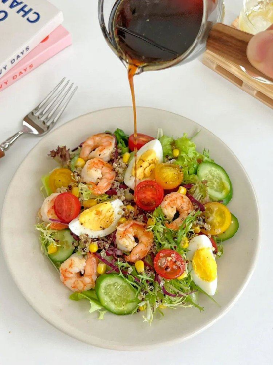 吃的干净真的会瘦 真的好好吃,用油醋汁拌蔬菜和鸡蛋、虾 真的好吃S了,太下饭了,比吃肉还香 我一般搭配西红柿、黄瓜、玉米、鸡蛋🥚、虾…做法很简单,直接淋上油醋汁就行。 吃起来很爽口入味,两个口味都不错,拌草都好吃,也可以搭配水煮菜, 跟外面轻食店味道一样,配料很干净,管理期放心炫,姐妹们都去试试