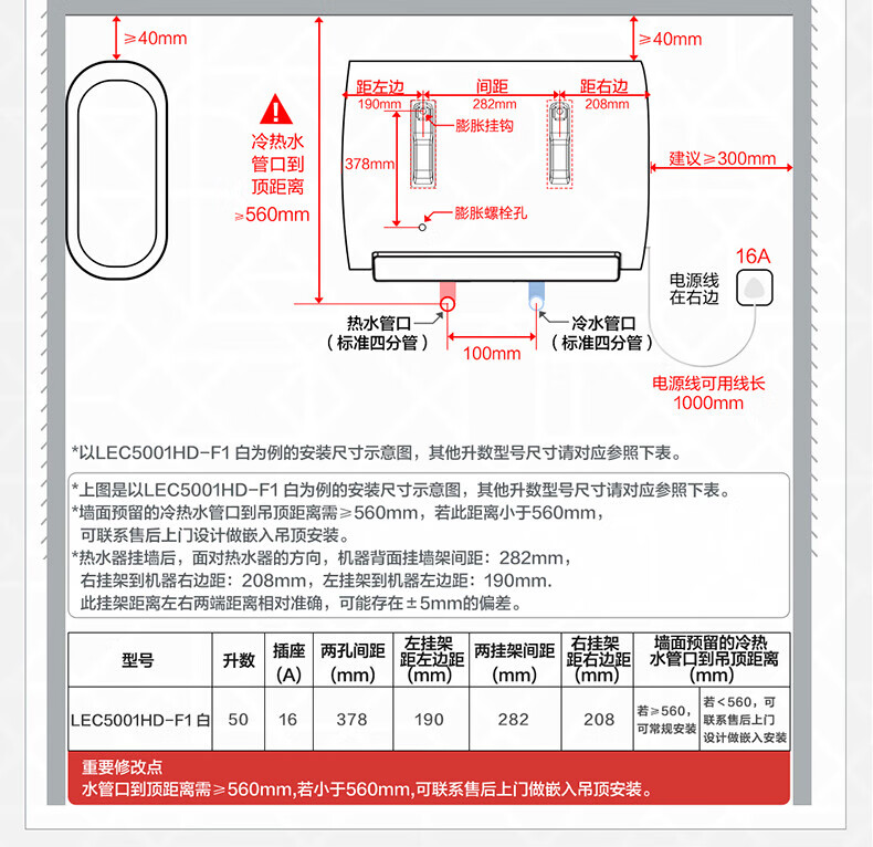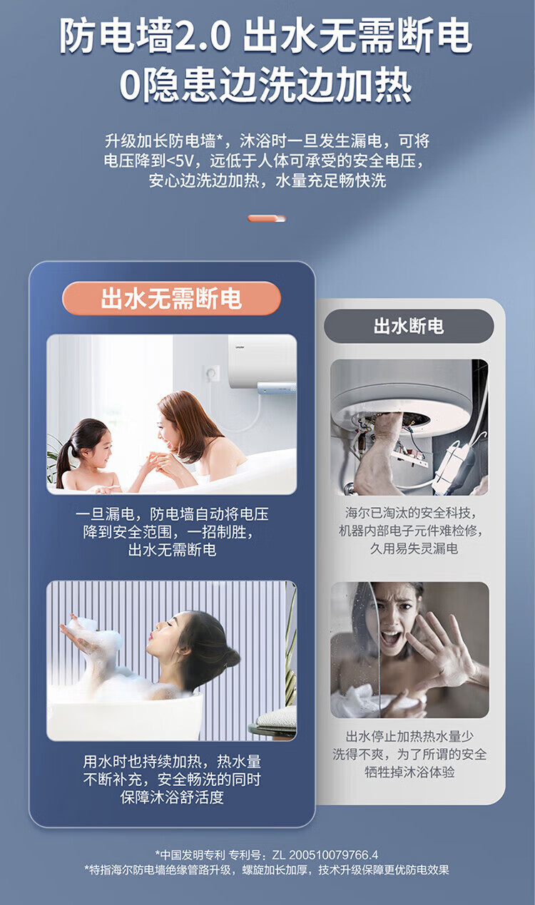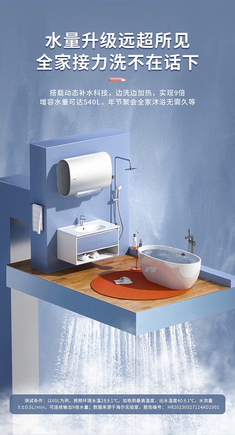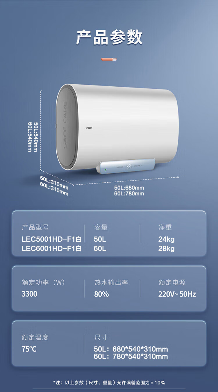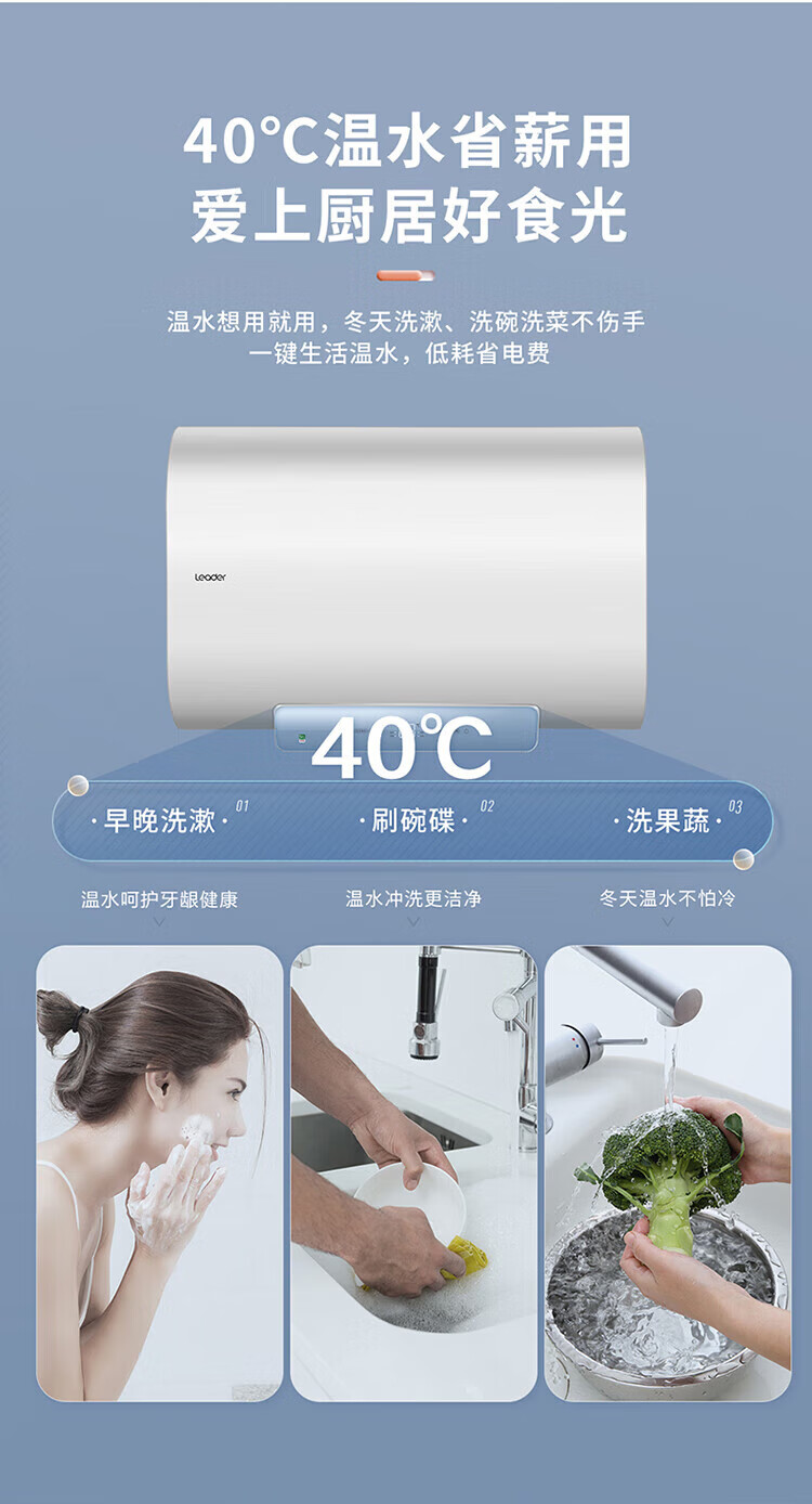 海尔(Haier)智家出品Leader系列热水器电热水器扁桶【F1】双胆速热储水式纤薄小型免费测量镁棒免更换 50L 3300W 约70%顾客选择镁棒免换F1