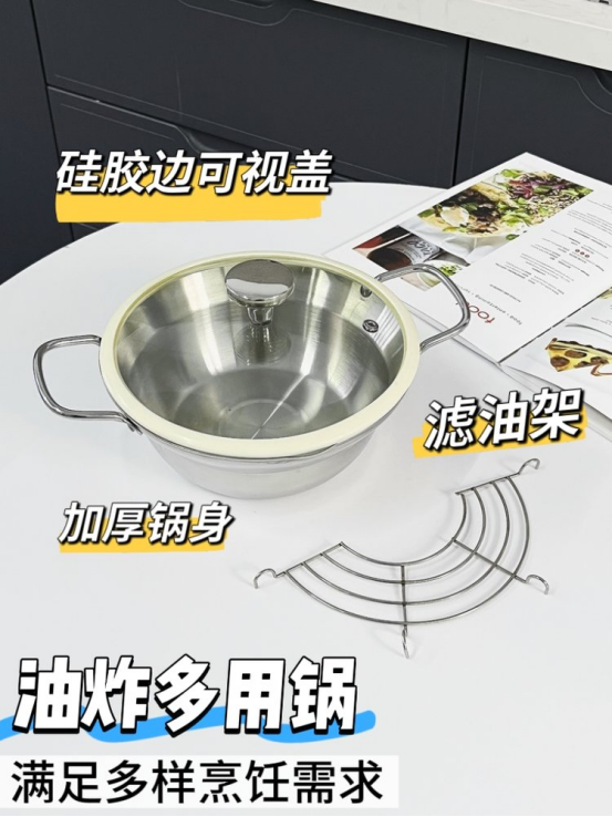 新品首发🔥🔥 锅体可当油炸锅、油泼锅、热奶锅使用,搭配滤油架,一套满足多样烹饪需求🥘 🔺沥油架底部带支撑脚,实现悬空滤油,让油脂与食材彻底分离,口感更酥脆不腻 🔺体带鹰嘴导流口,倒油倒汤不滴挂,搭配双耳把手更便捷 🔺锅体上宽下窄设计,少量油即可浸没食材,比普通炒锅省油量显著,实现小份炸食自由🍟 20CM多用锅+滤油架+白色硅胶边盖子 三件套装 某宝同款在售368元 这批库存特价39.9元🉐三件套装20CM锅+滤油架+盖子 数量有限,手慢无!!