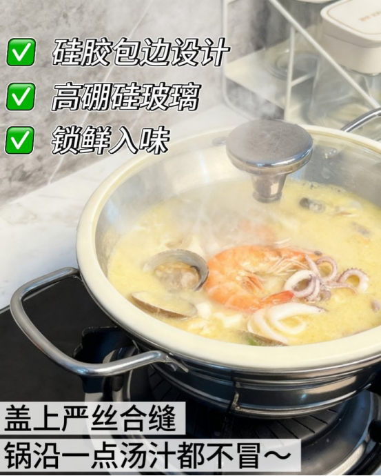 ✅『救命!这硅胶边可视玻璃盖才是锅具的灵魂搭档』 以前用普通锅盖真的崩溃!煮个粥溢得灶台全是,焖个菜总要看熟没熟反复开盖,直到换了这硅胶边玻璃盖,才知道做饭能这么省心😭 关键是适配家里80%的锅,性价比直接拉满! 🔴硅胶包边设计:不是那种硬邦邦的塑料边,是软乎乎的食品级硅胶,盖在锅上严丝合缝像吸住一样。盖着小火慢煮,锅沿一点汤汁都不冒,厨房洁癖狂喜✨ 🔴高硼硅材质:玻璃是高硼硅材质,透光性绝了!焖排骨、炖牛腩的时候,不用开盖就能清清楚楚看到锅里的状态,再也不会因为反复开盖导致温度下降,炖出来的肉又柴又老 🔴锁鲜入味:做可乐鸡翅的时候,普通锅盖密封性差,煮着煮着汤汁就少了一半,味道还淡。这硅胶边盖的密封力超牛,焖煮过程中香味一点不跑,汤汁浓稠度刚好裹在每块鸡翅上,咬一口满是酱香🥩