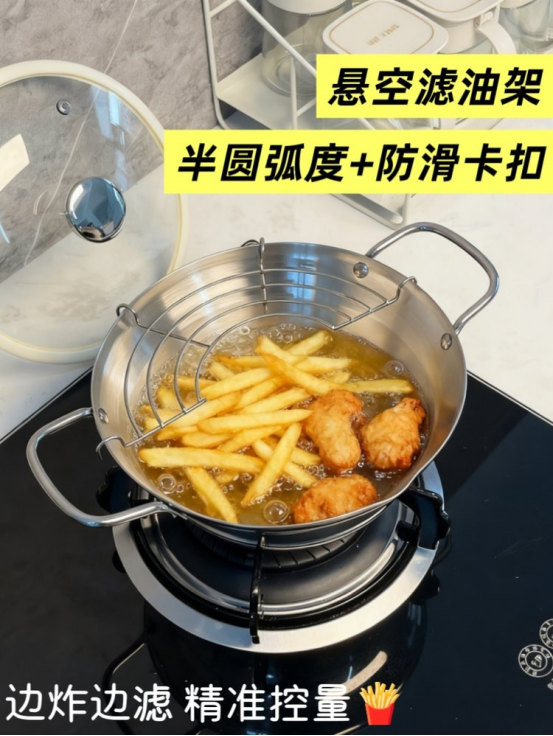 💥3 秒速沥油!【易铂yispot 304不锈钢舒曼油炸多用锅套装】🍂这个油炸锅 + 悬空架,懒人直接锁死🔒用了 1 个月,油炸食物热量感觉都低了❗❗