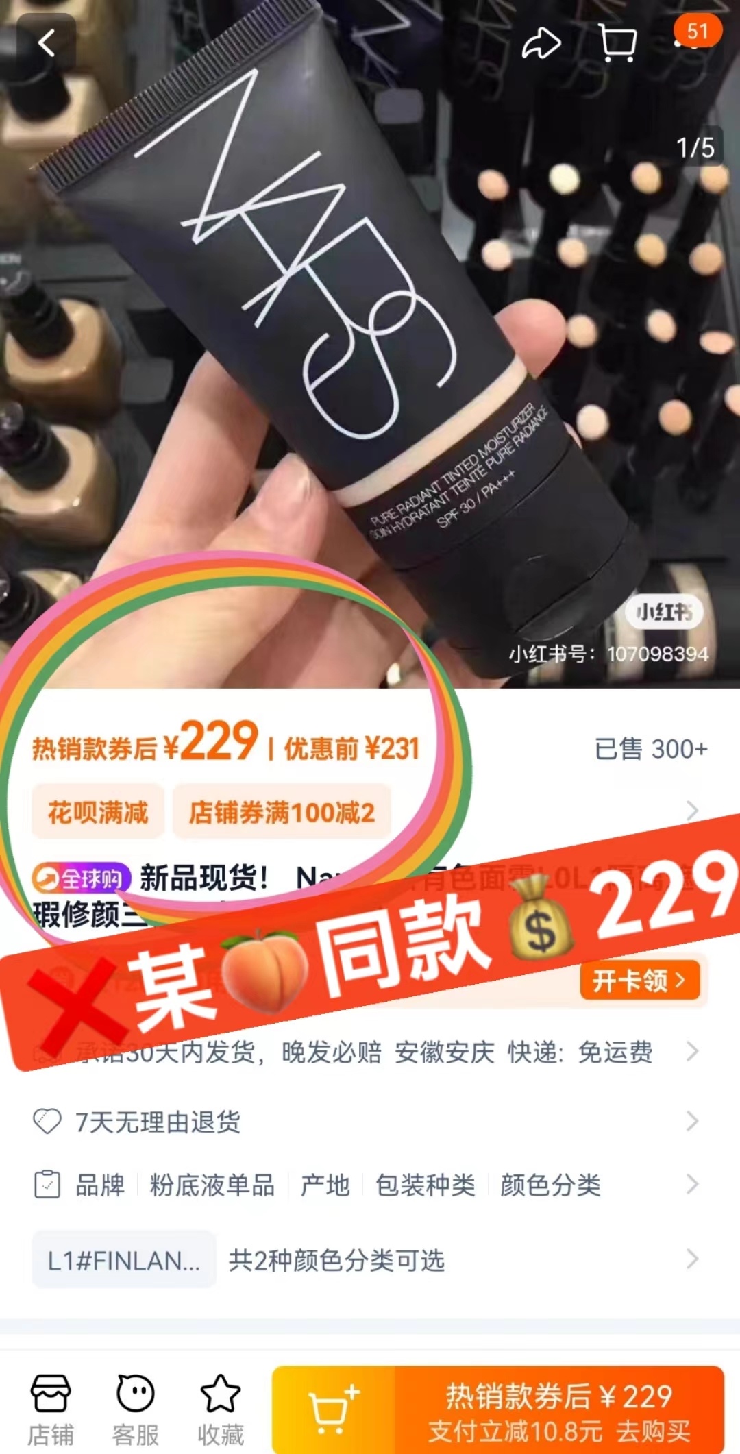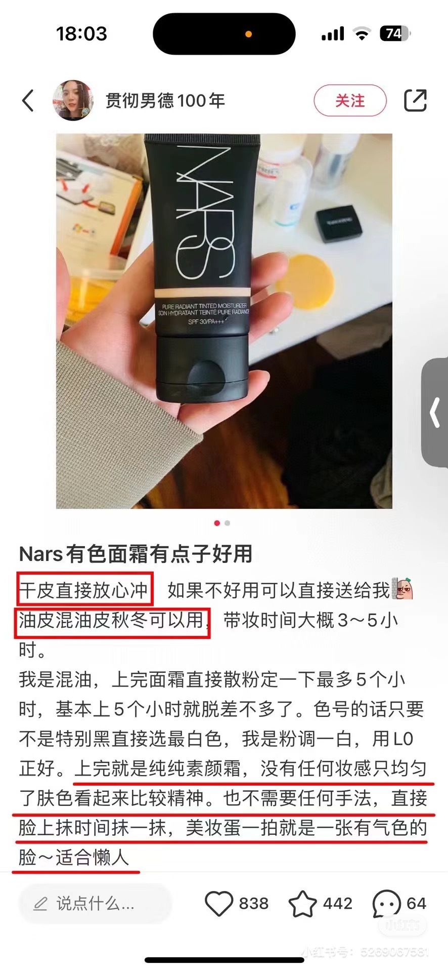 【NARS三合一素颜霜20ml】集防晒+隔离+轻薄粉底为一体👍随便涂不讲究手法🧡get完美素颜妆