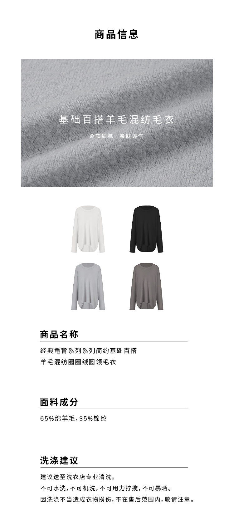 HIDEMI 经典龟背系列系列简约基础百搭羊毛混纺圈圈绒圆领毛衣