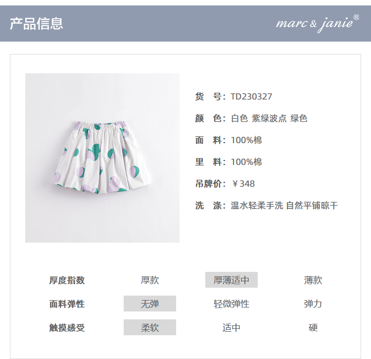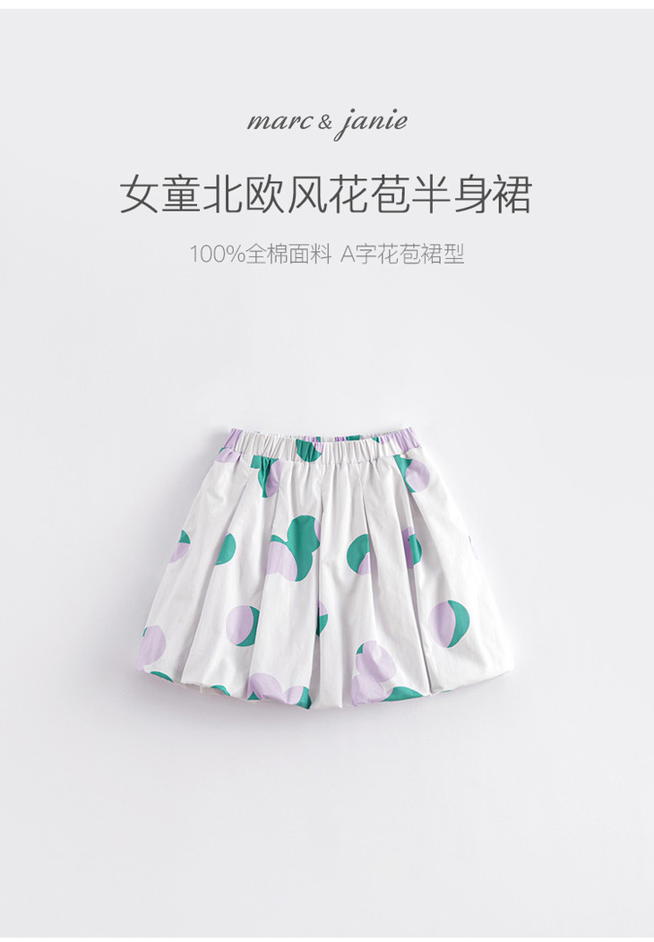 马克珍妮春夏新品 女童北欧风A字全棉花苞半身裙230327