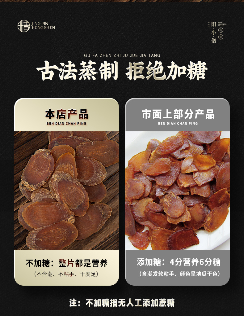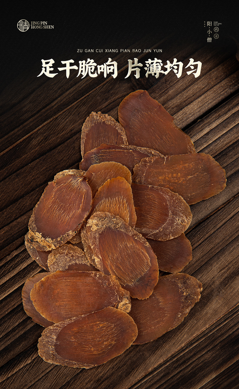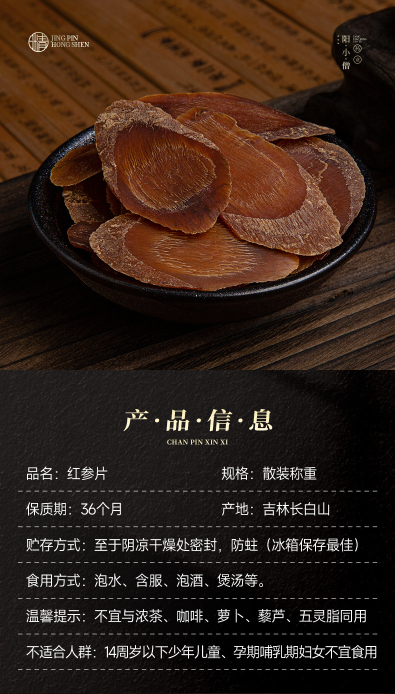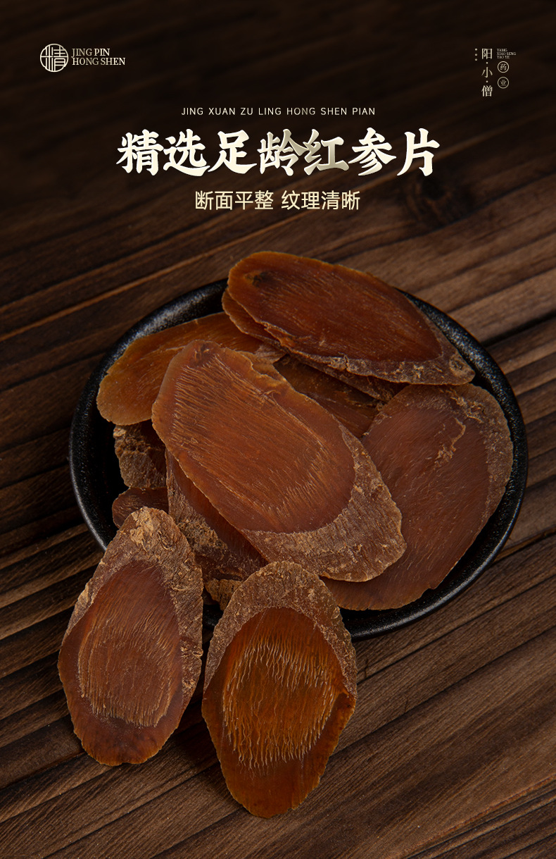 【片片珍粹!长白山红参】优质产地,造就天然好参,精选足龄红参片,断面平整,纹理清晰,古法蒸制红参整支切片参类L