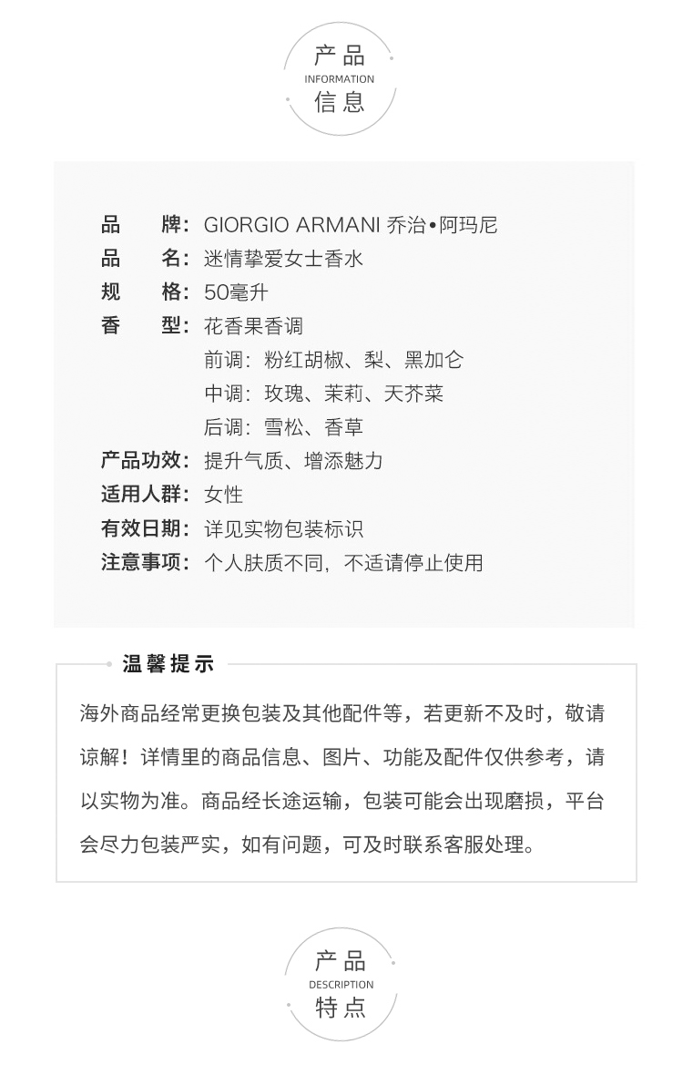阿玛尼红色Si迷情挚爱女士香水花果香调持久留香浓香水红瓶