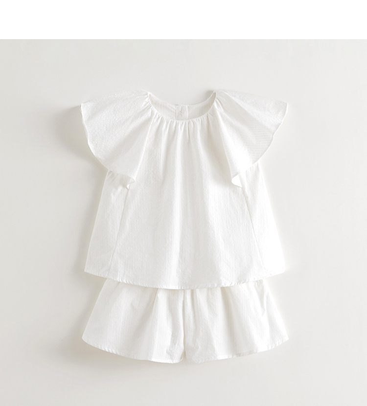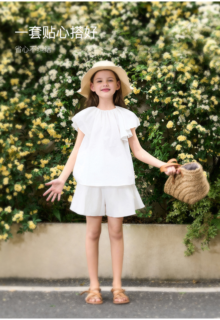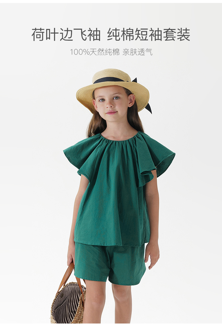 【马克珍妮 法式】女童荷叶边飞袖短袖套装2件套夏装新款250003