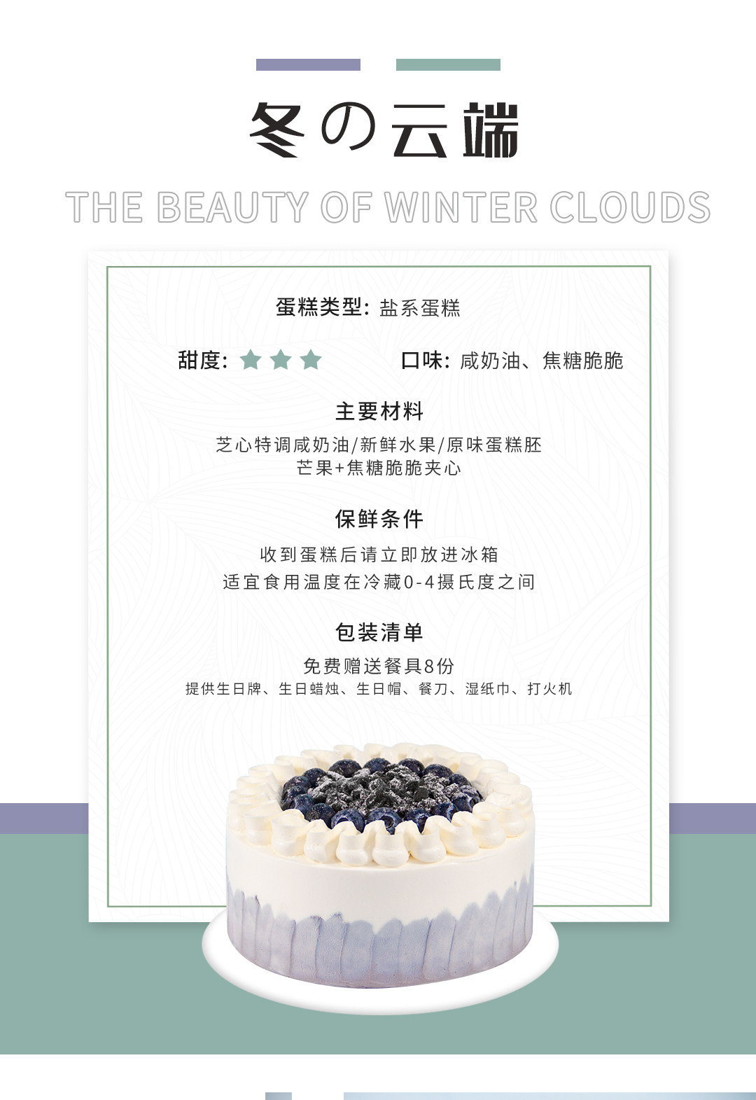 (咸味)奶油【冬の云端】新鲜水果+焦糖脆脆夹心,蓝莓混合巧克力搭配装饰
