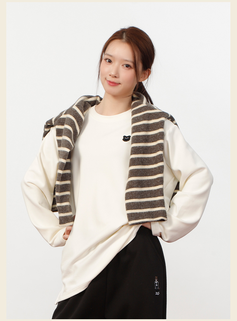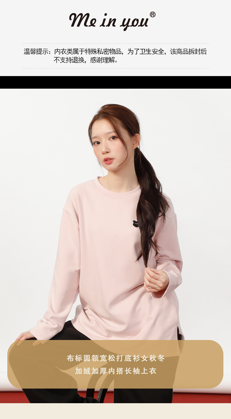 圆领宽松加绒加厚布标打底衫-纪念日百货门店同款167843940