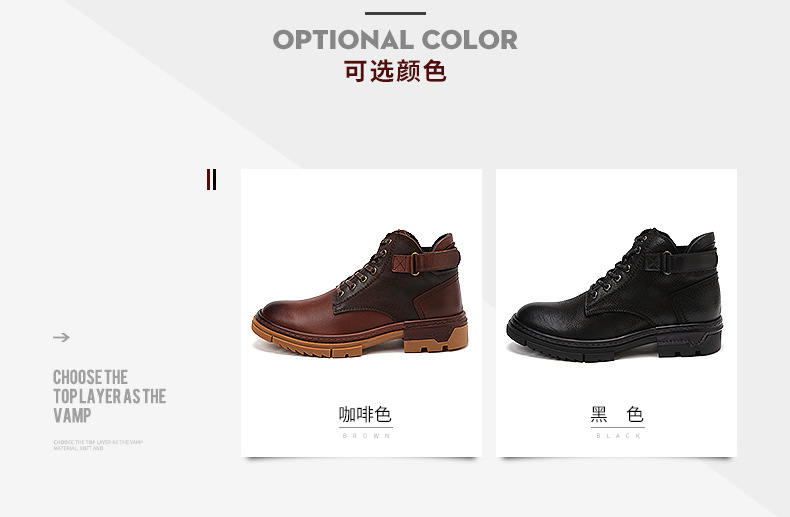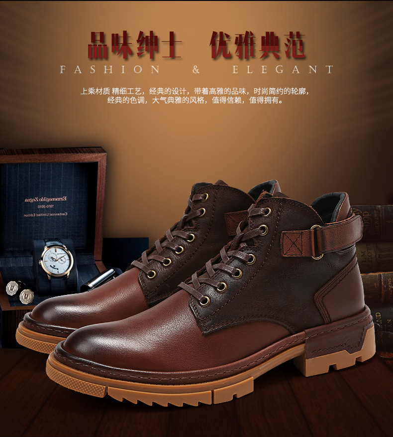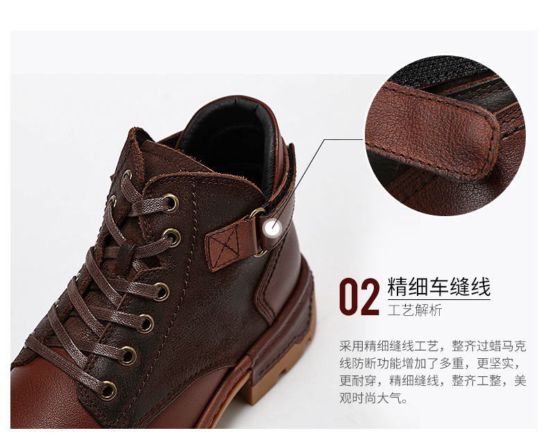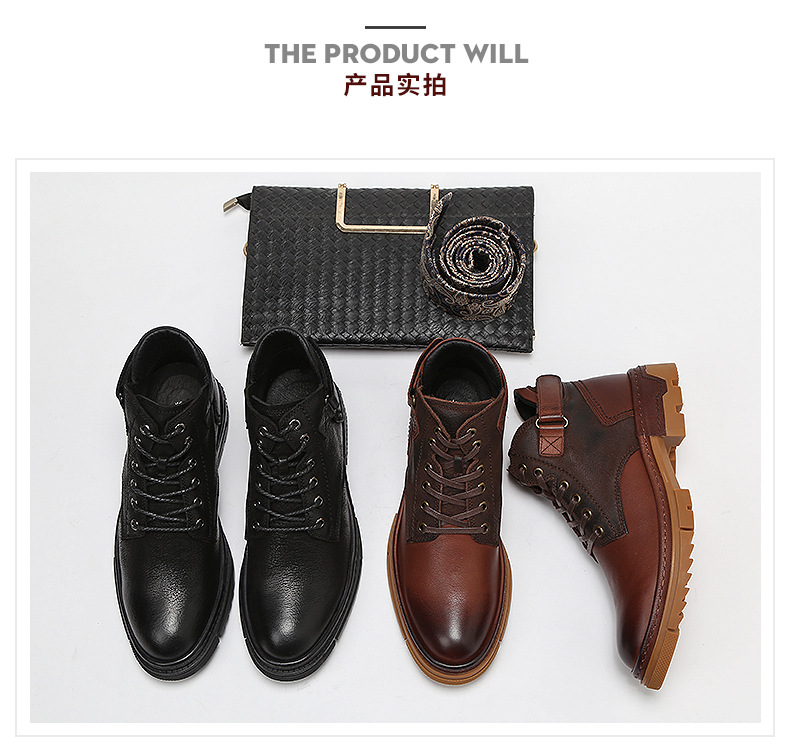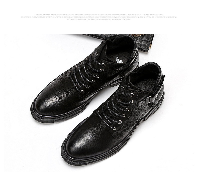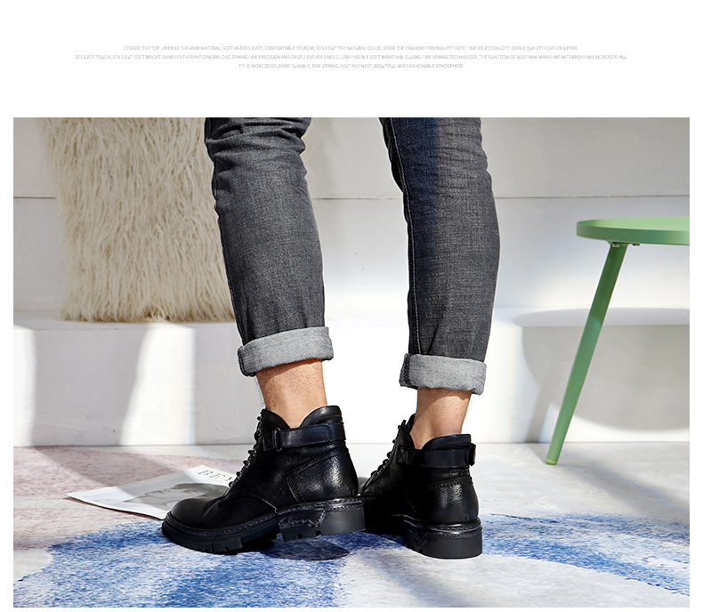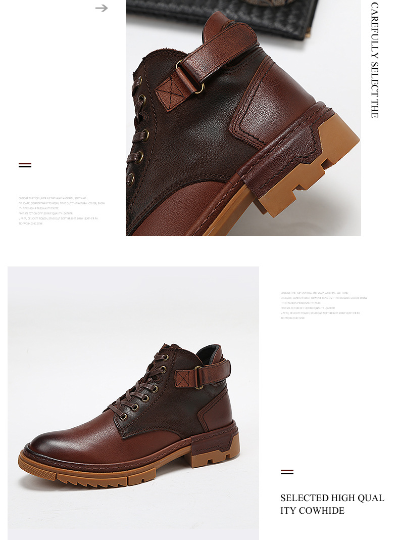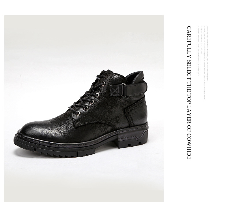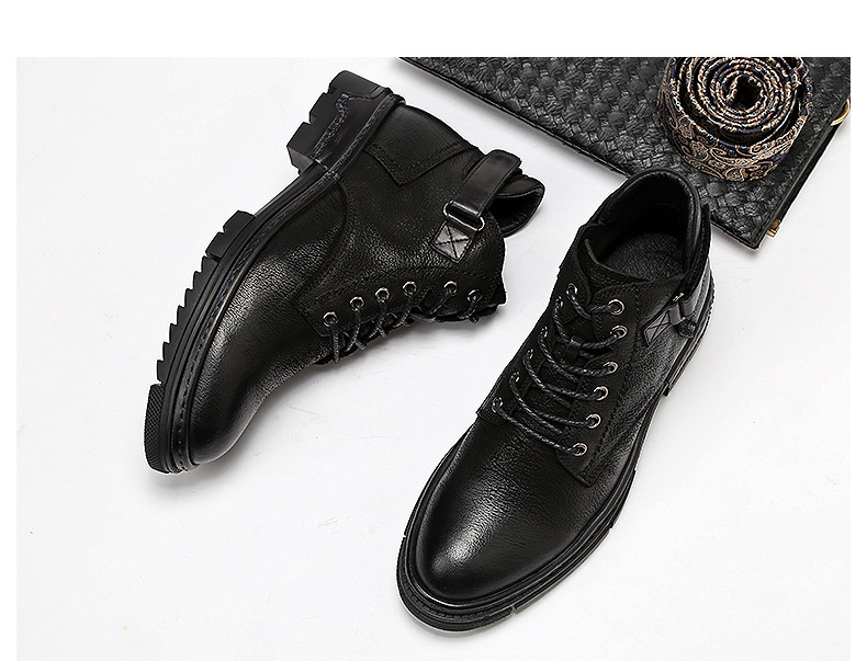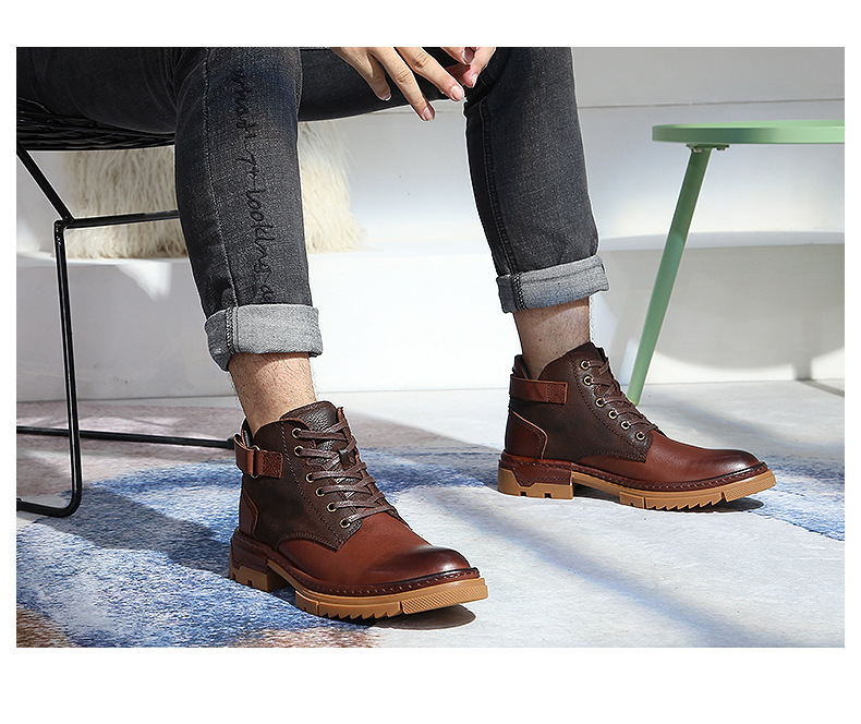 头层摔纹牛皮马丁靴男士秋冬新款复古风休闲男鞋系带高帮中筒男靴
