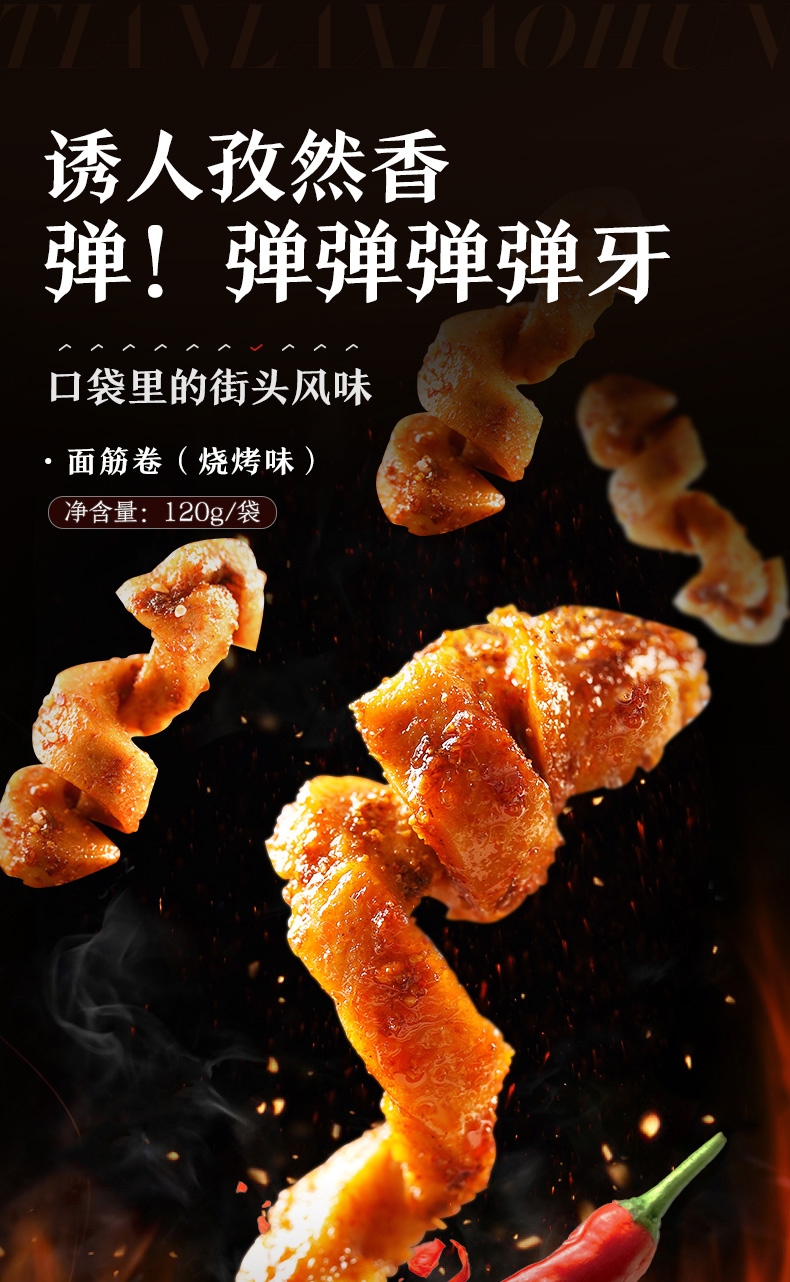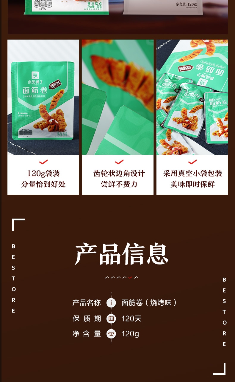 良品铺子 面筋卷烧烤味烤面筋网红辣条味小零食儿时怀旧小吃120g