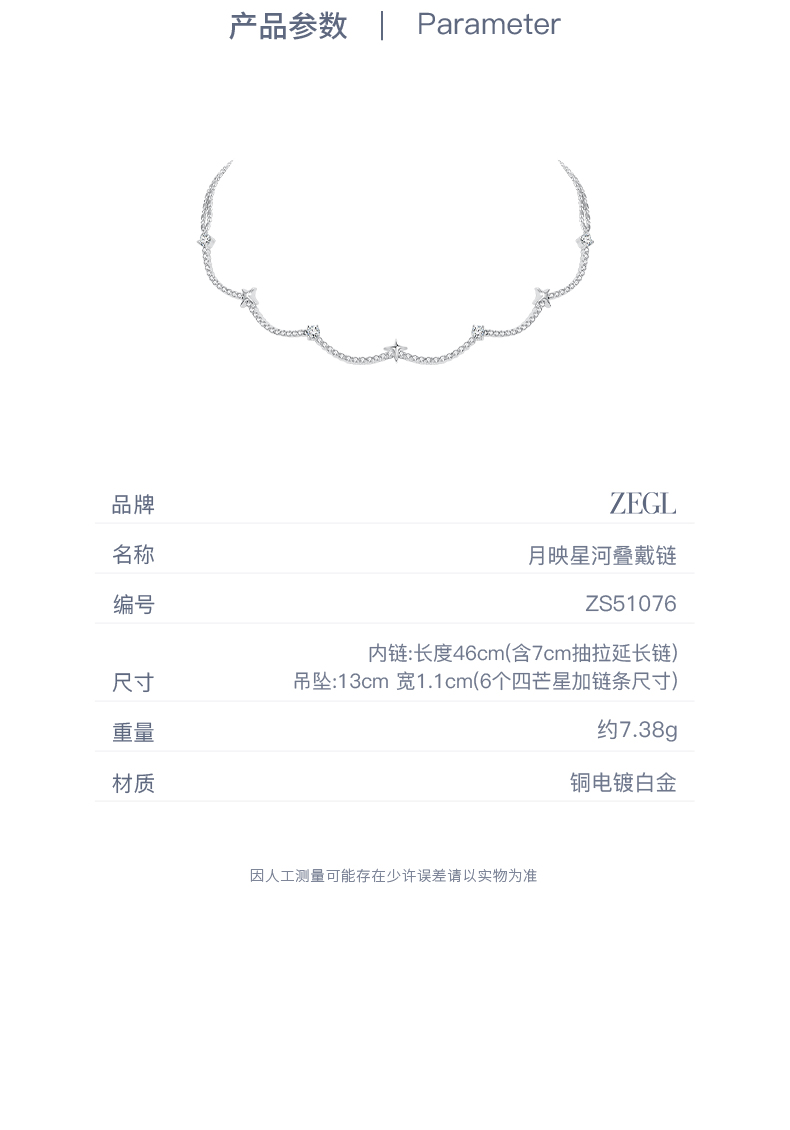 ZEGL设计师月映星河系列星星项链女2024新款颈链叠戴锁骨链高级感