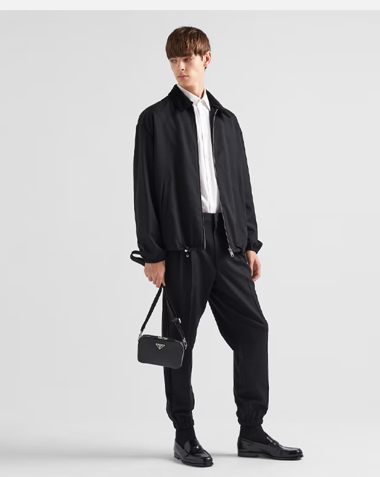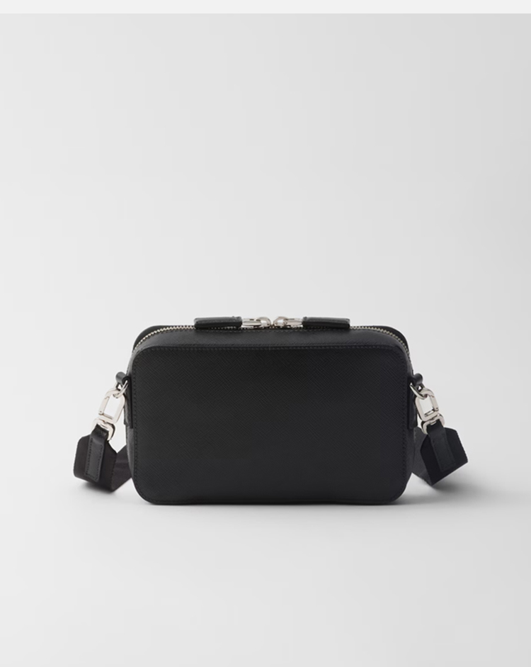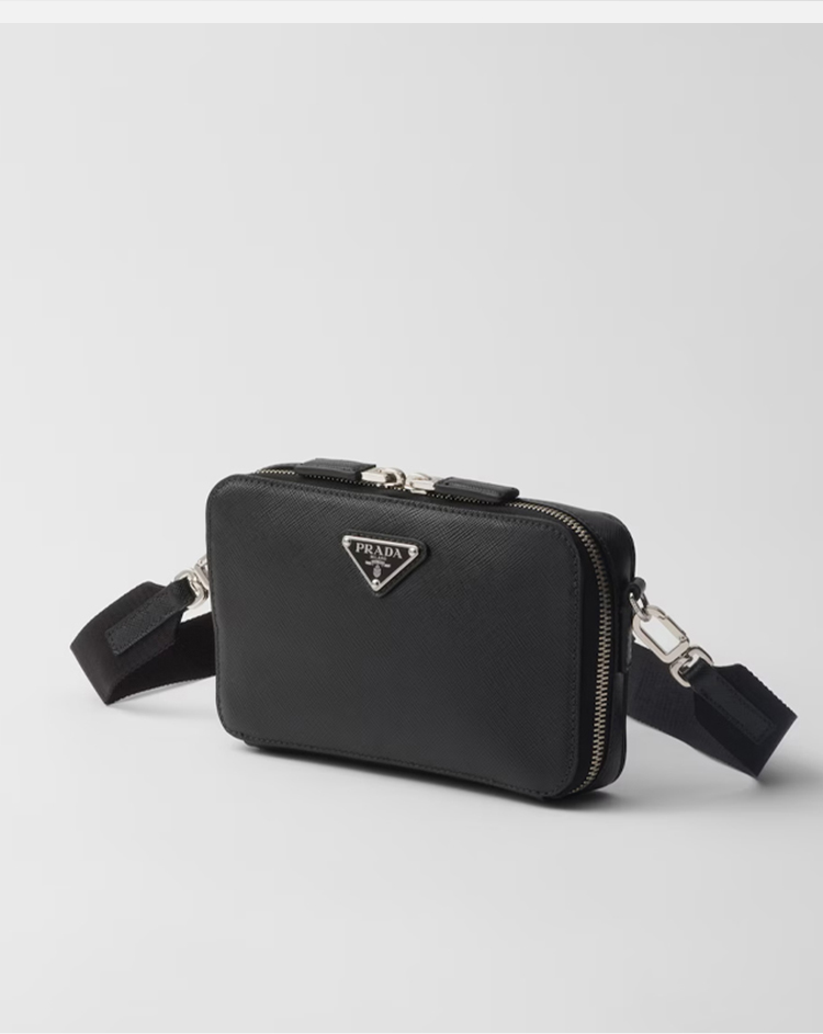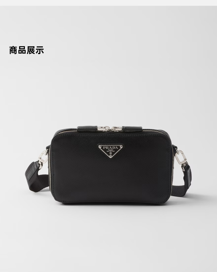 PRADA 普拉达 男士 Brique Saffiano 皮革珐琅金属三角形徽标单肩包 黑色 2VH173 9Z2 F0002 NOO