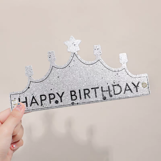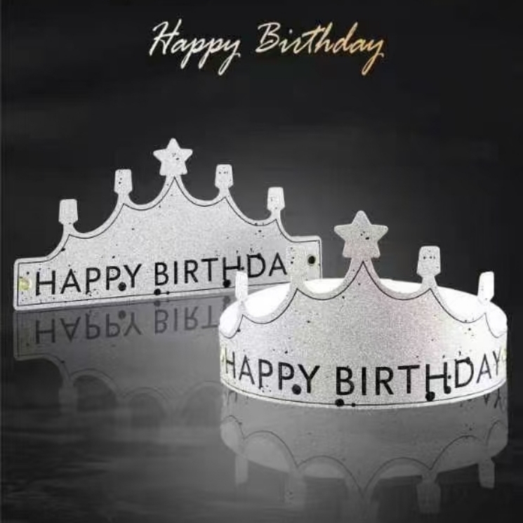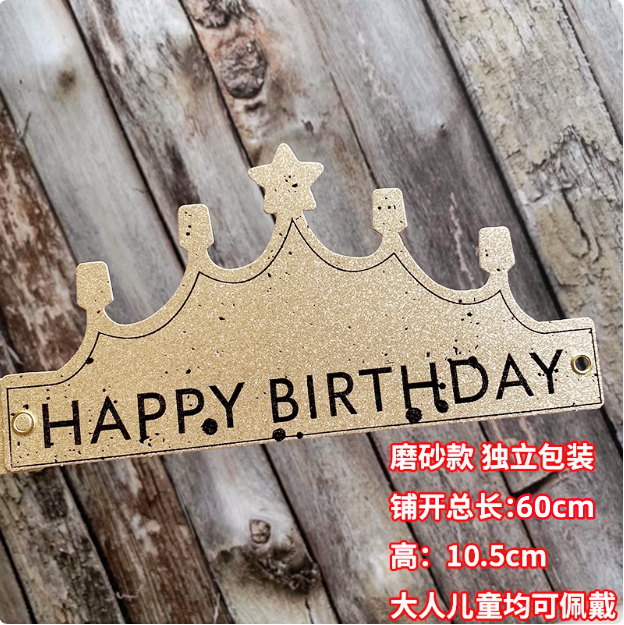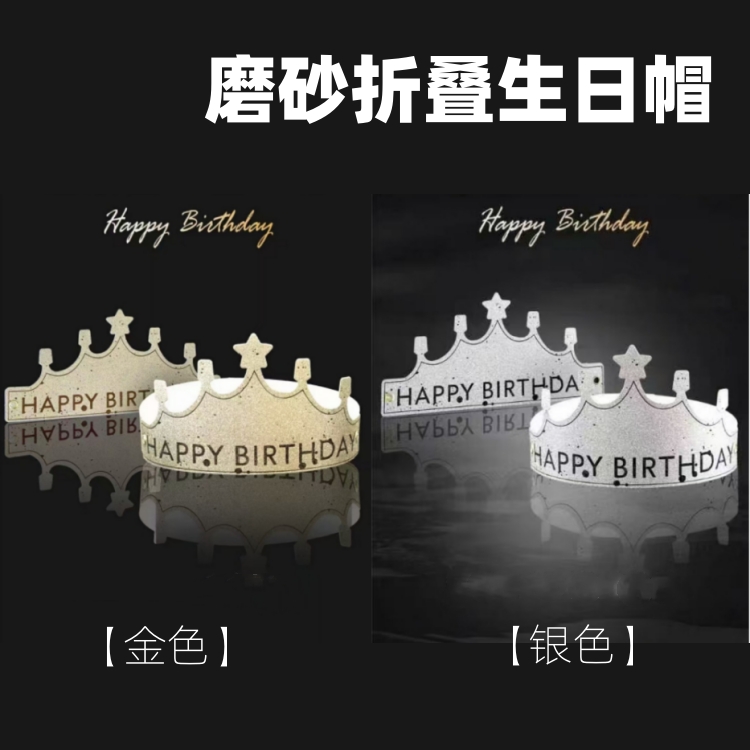 折叠生日帽【磨砂亮晶晶款】金色/银色 星星方块 黑字体HAPPYBIRTHDAY皇冠生日帽