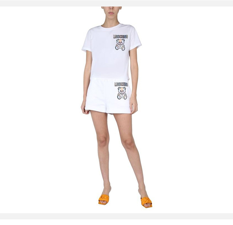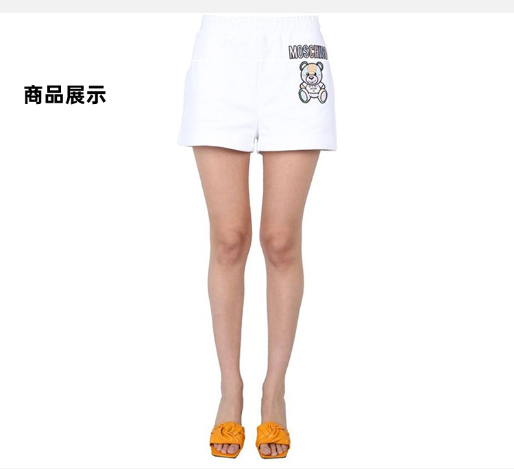 MOSCHINO 莫斯奇诺 女士棉质字母logo大熊猫印花休闲短裤 白色 0318 0428 2001