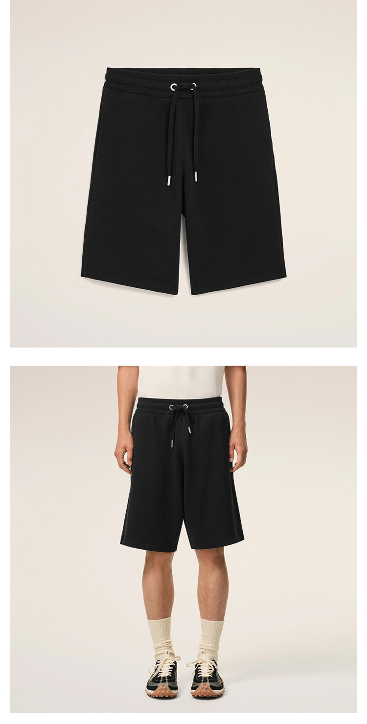 AMI PARIS 男士心形徽标刺绣棉质休闲短裤 黑色 HSO825 730 045
