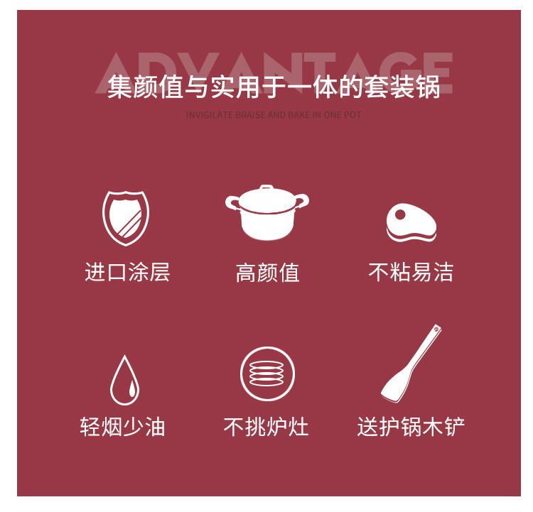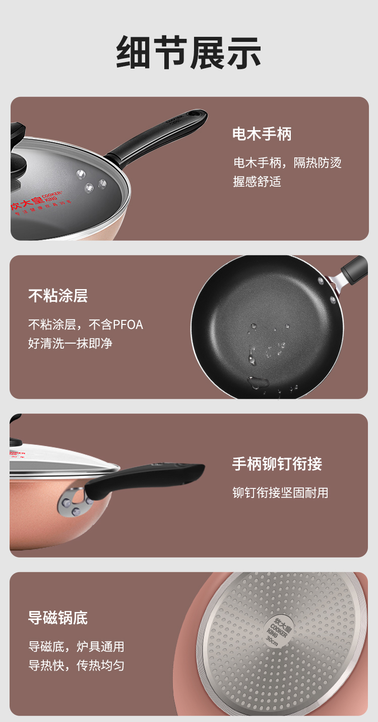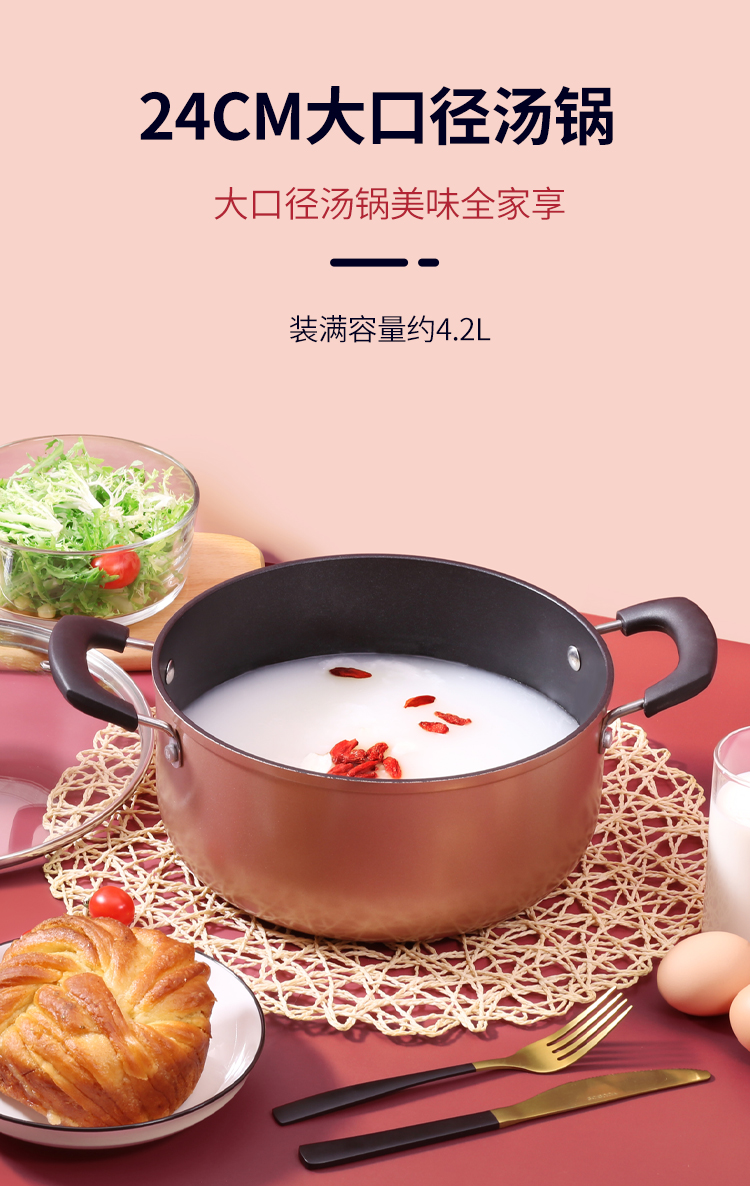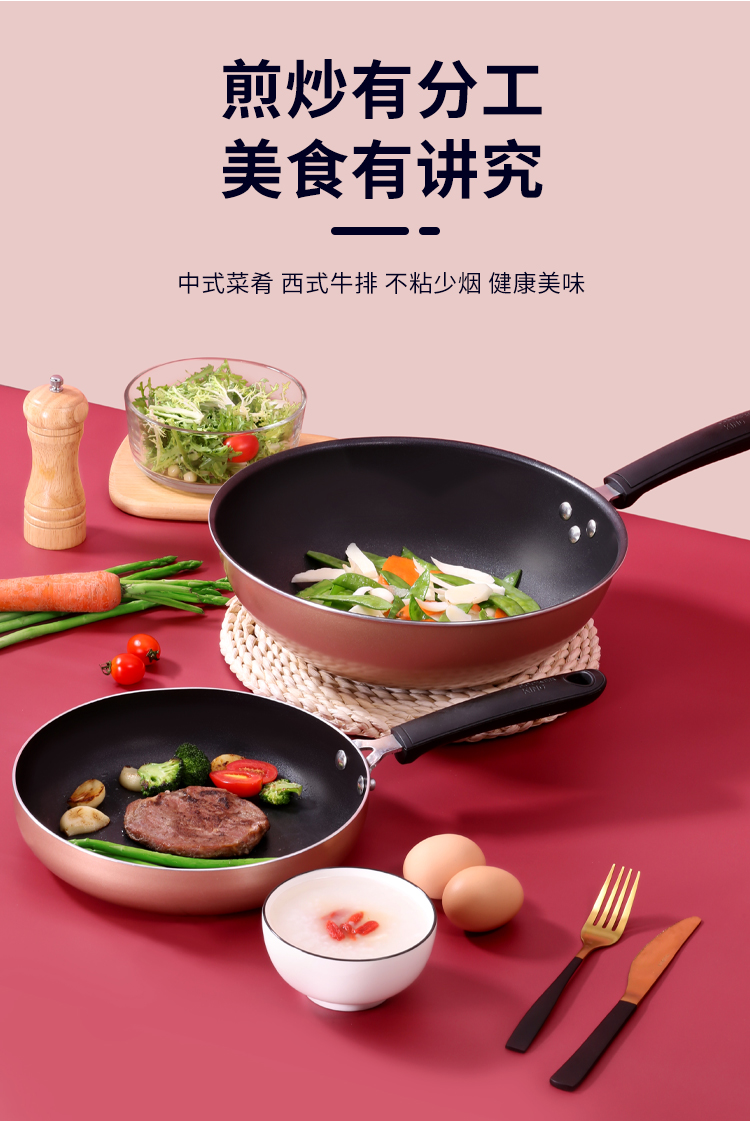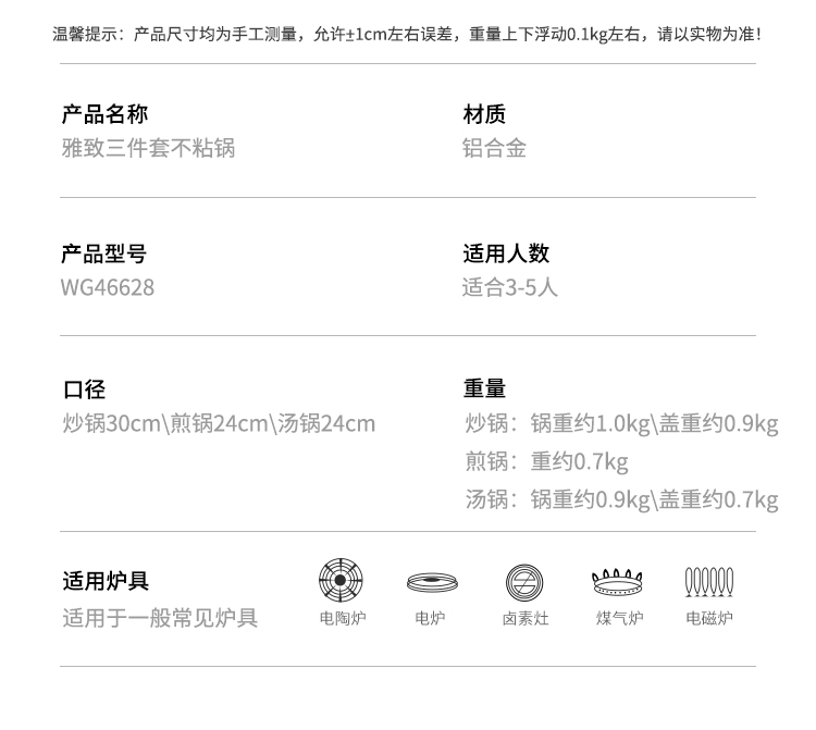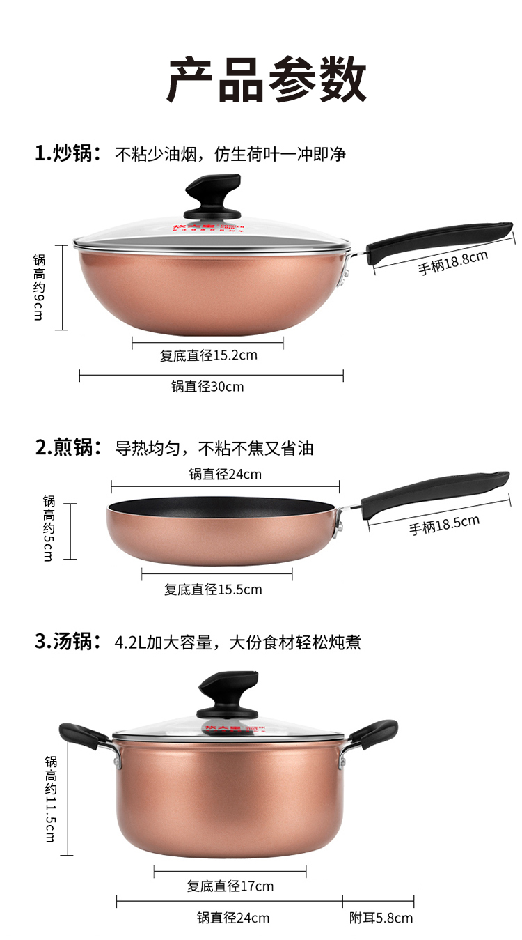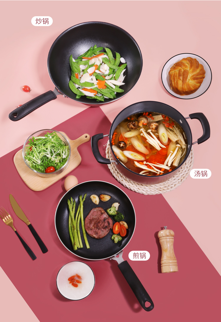 炊大皇锅具套装居家不粘炒锅煎锅汤锅三件套装锅明火电磁炉通用厨具套装WG46628