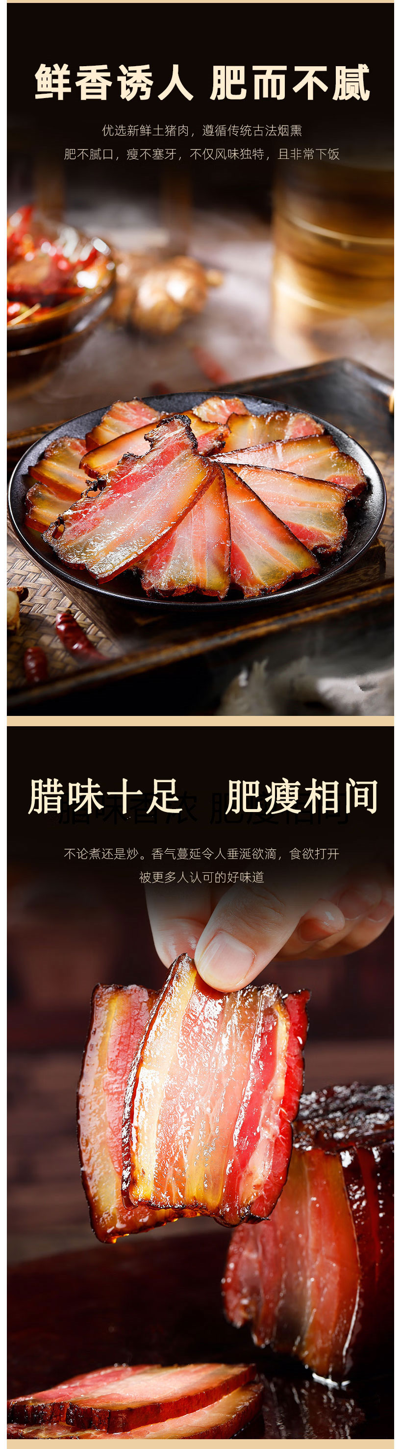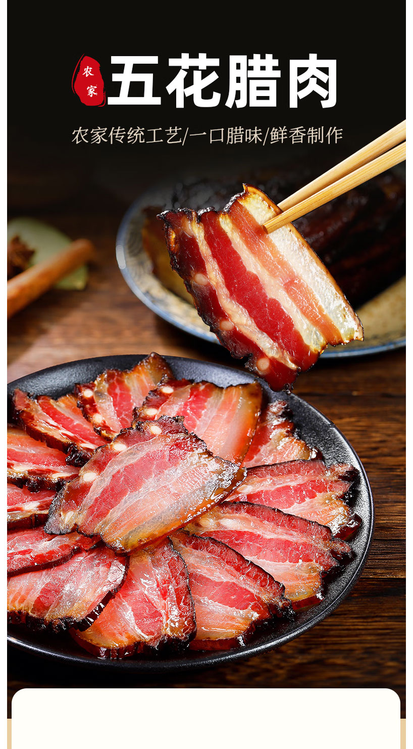 【严选】湖北特产恩施土家腊肉 腊冬至腊五花肉农家自制柴火烟薰腊五花肉500g/袋(厂家直发)
