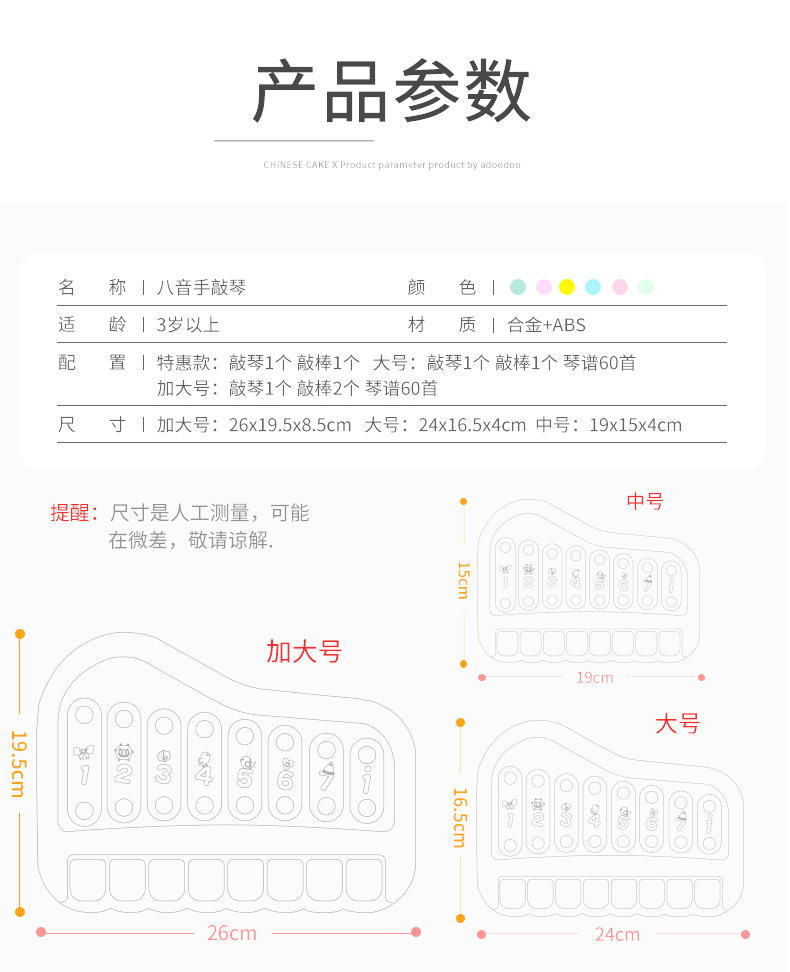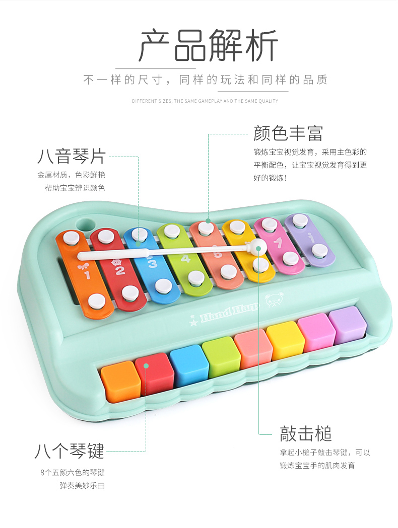 Z808 益智八音手敲琴 不带琴谱 中号粉/绿(颜色款式随机发货)