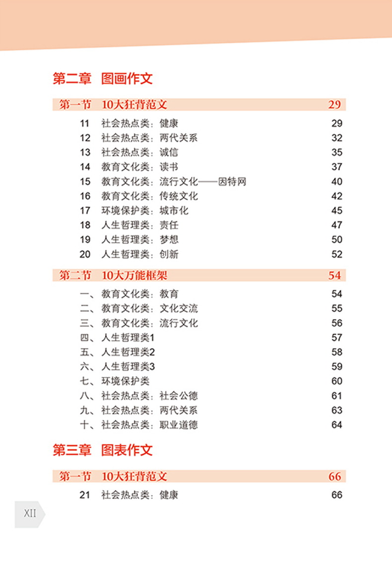 2. 书中只收录“纯干货”内容:30篇范文+ 30个万能框架,助考生用最短的时间斩获考研写作高分。