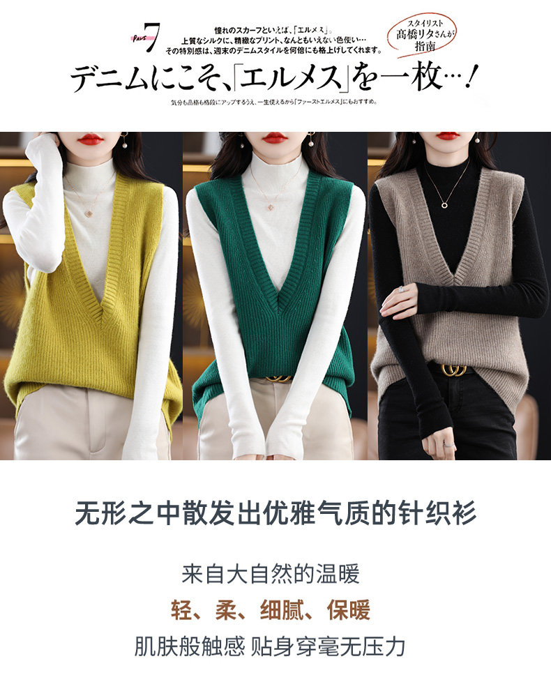 深V领含羊毛针织背心,轻盈保暖柔软亲肤,秋冬季必备百搭单品