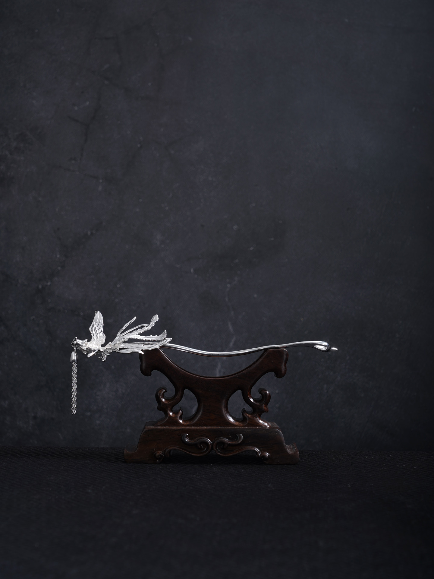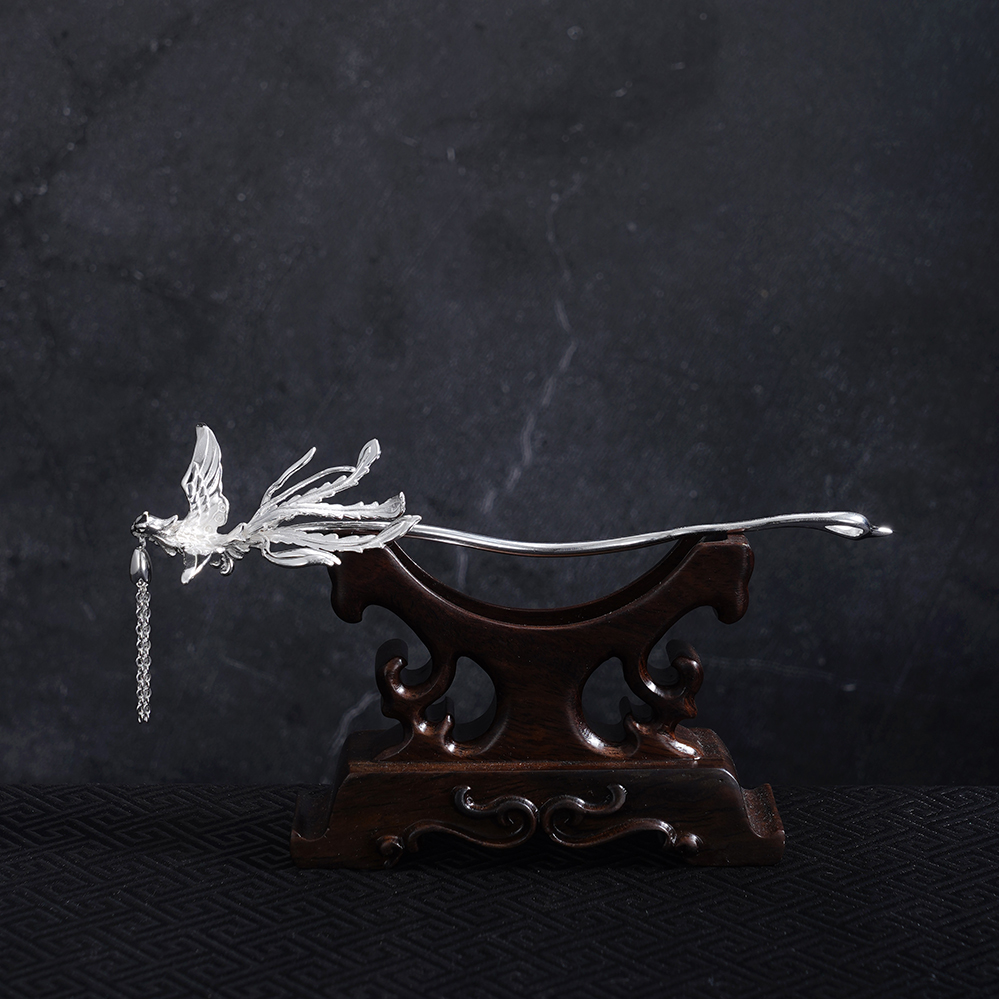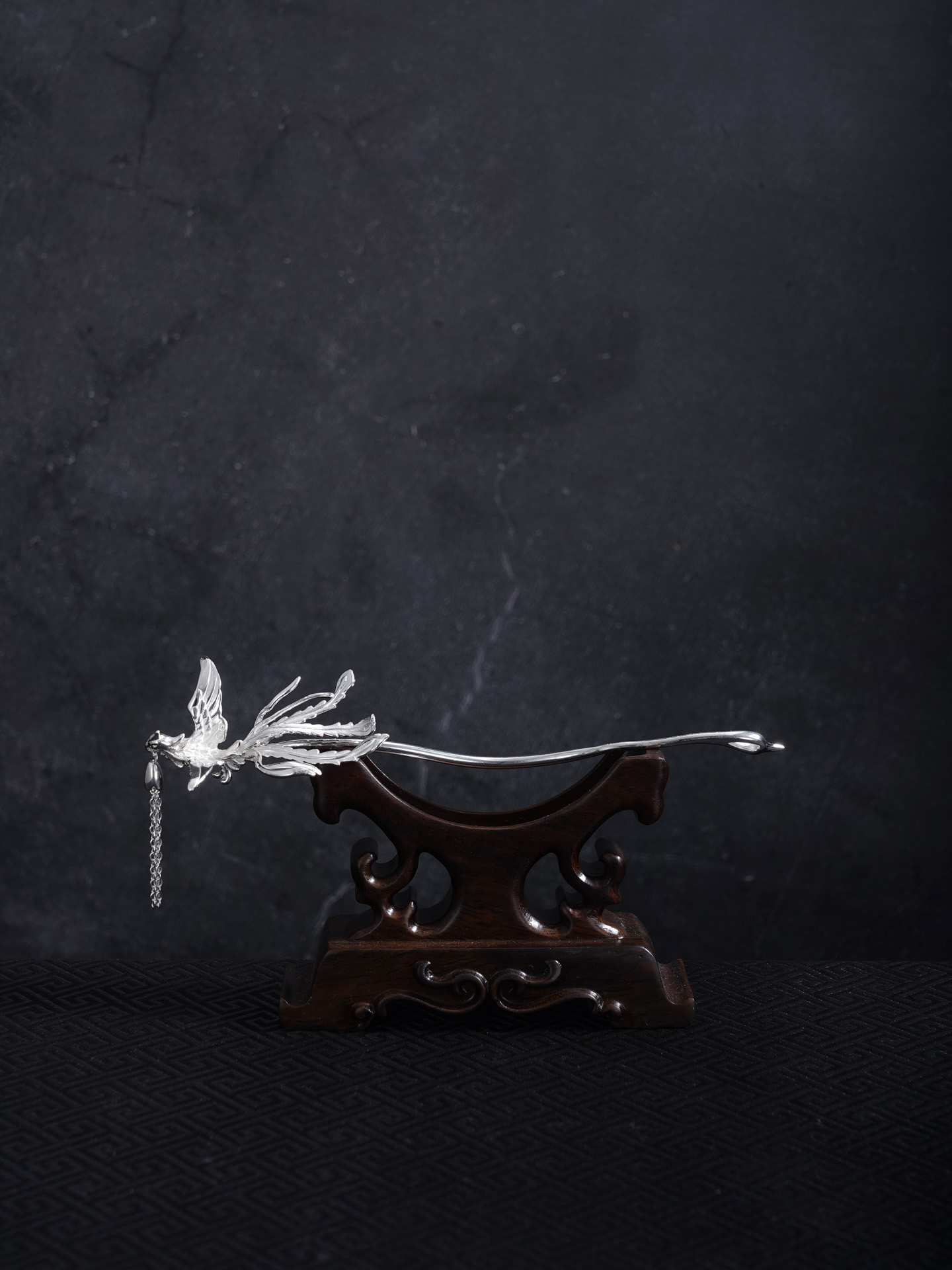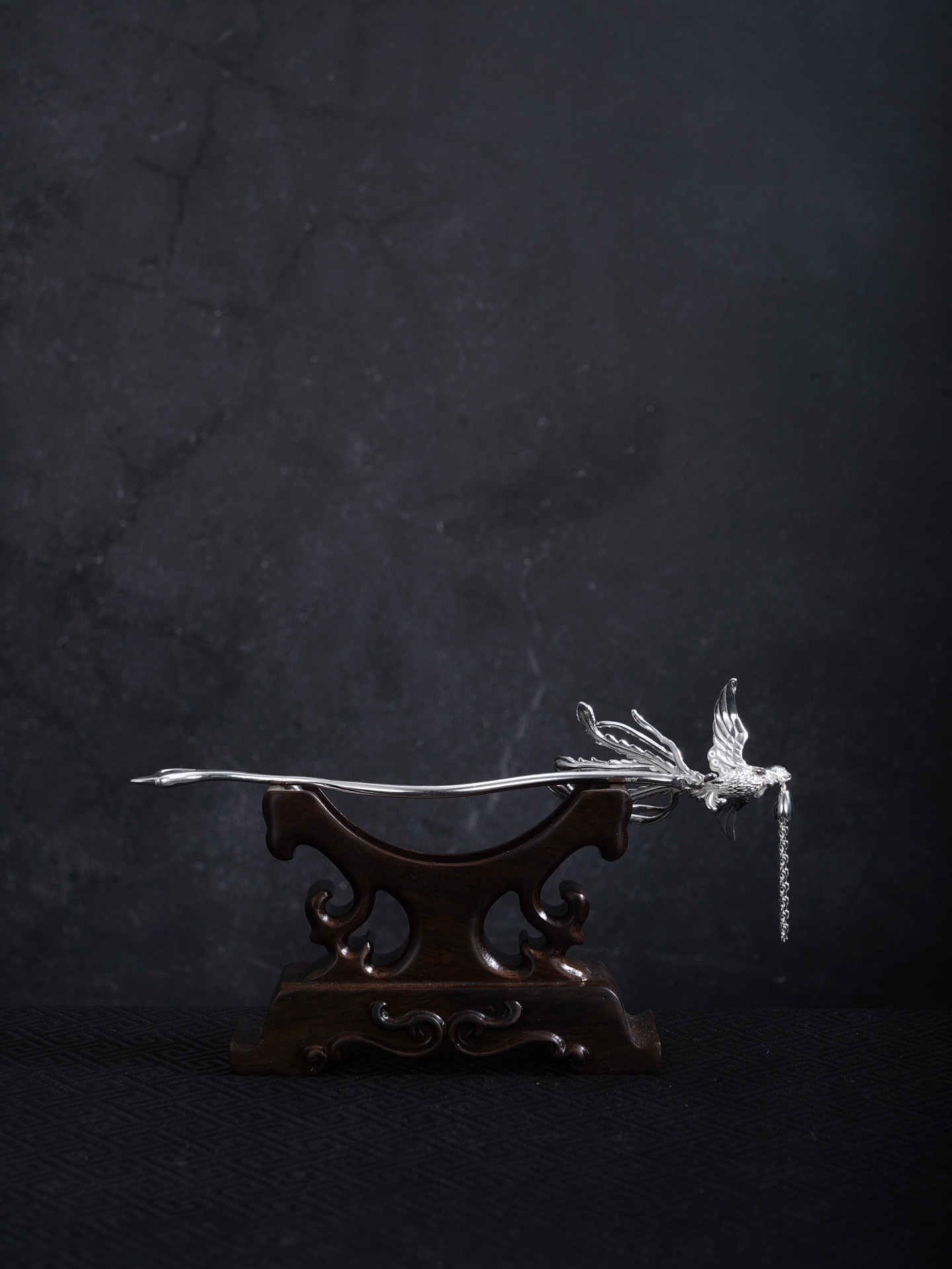 【寓意】:以纯银精铸凤凰为形,象征盛世祥瑞与女性高洁。凤凰口衔流苏之巧思,更寄寓胸怀天下、福泽广布之宏愿。整体寓如凤振翅,风华自成,一生顺遂安康,福运长伴。